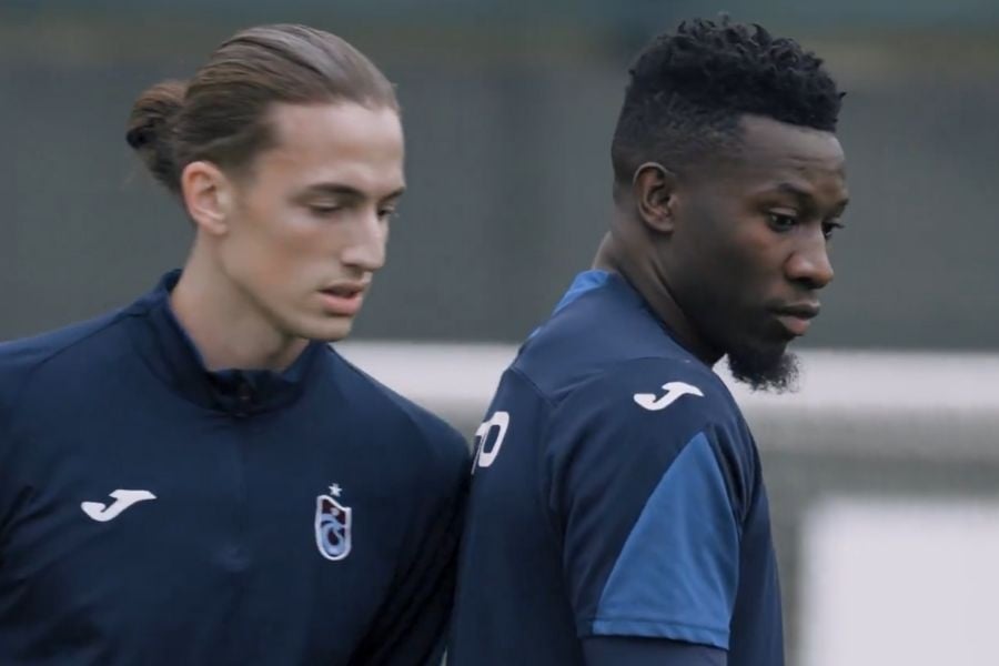 Op de website van Trabzonspor is een clip te zien waarin een vastberaden Onana op het trainingsveld ervaring overbrengt op jonge keepers.