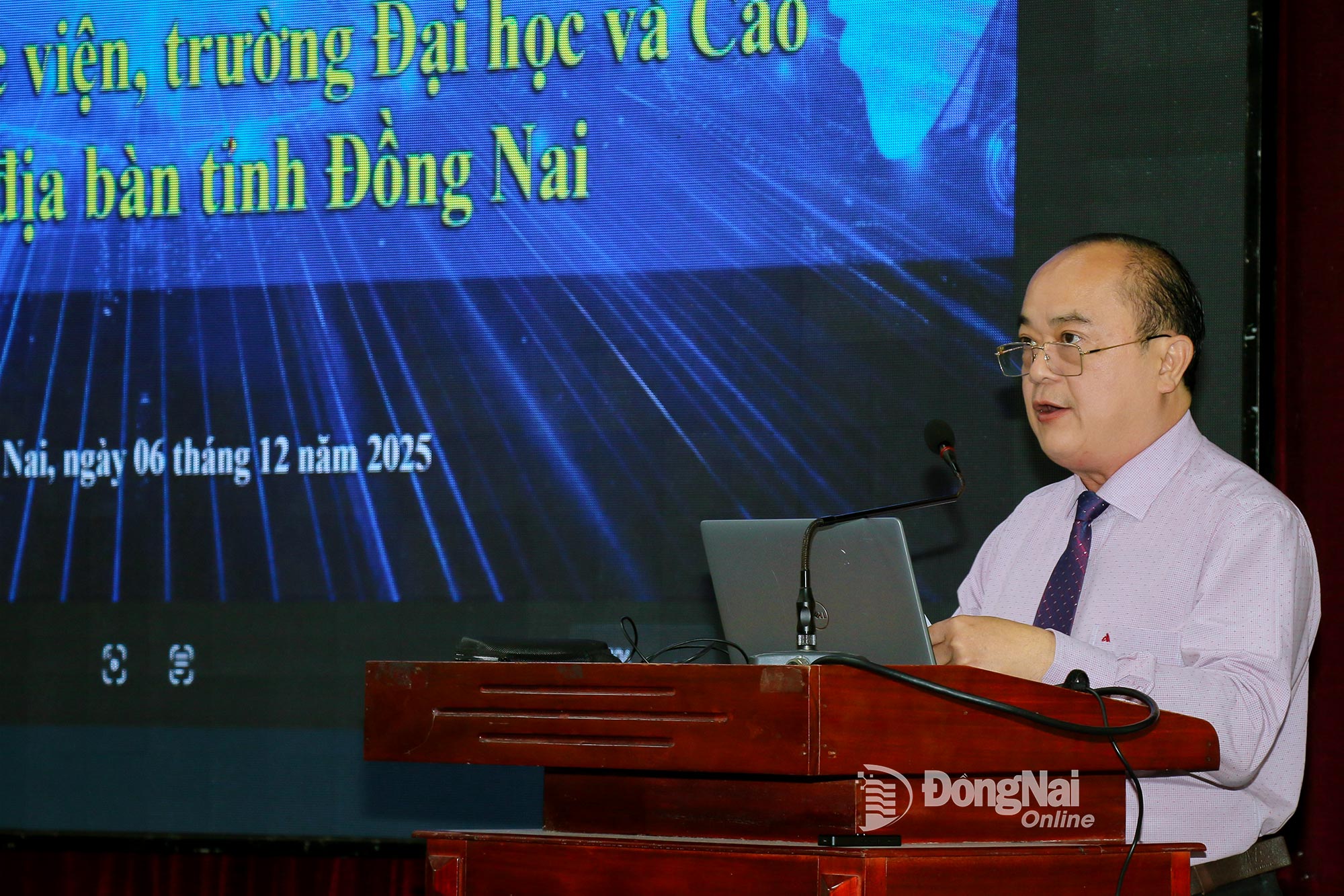 | Adjunct-directeur van het Departement Wetenschap en Technologie van de provincie Dong Nai, Vo Hoang Khai, sprak op de conferentie. Foto: Hai Quan |