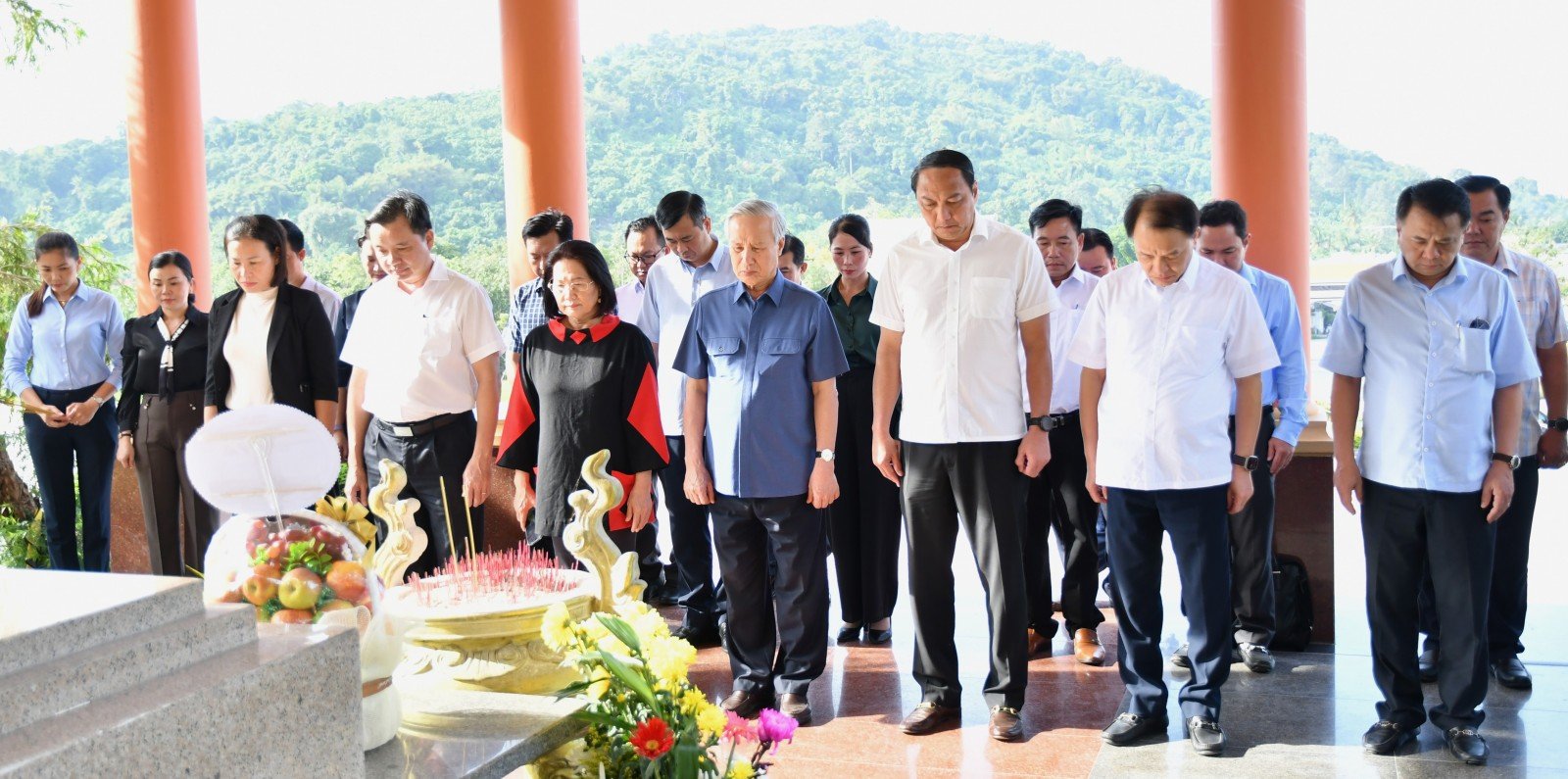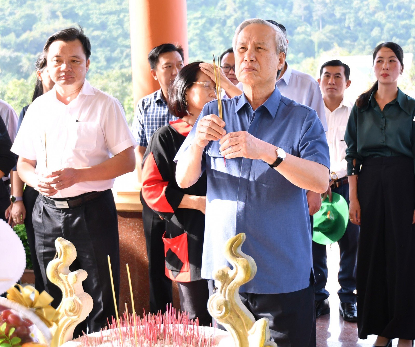 Kameraad Tran Quoc Vuong en de delegatie offerden wierook bij de Herdenkingstempel voor Helden en Martelaren, waar de namen van bijna 1.000 opmerkelijke zonen van het thuisland Hon Dat staan vermeld, die heldhaftige offers brachten om de onafhankelijkheid van het land te beschermen.