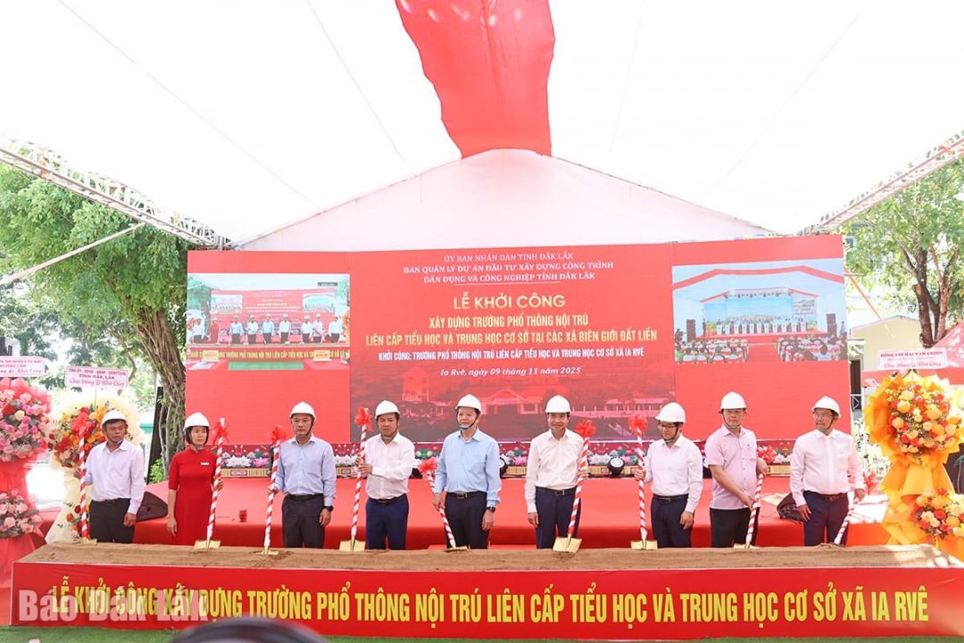 Op de brug van de gemeente Ia Rve, provincie Dak Lak , woonde vicepremier Mai Van Chinh, lid van het Centraal Comité van de Partij, de eerste steenlegging bij voor de bouw van de kostschool voor basisonderwijs en voortgezet onderwijs in de gemeente Ia Rve. Aan de kant van de provincie Dak Lak waren de volgende kameraden aanwezig: Luong Nguyen Minh Triet, plaatsvervangend lid van het Centraal Comité van de Partij, secretaris van het Provinciaal Partijcomité; Ta Anh Tuan, adjunct-secretaris van het Provinciaal Partijcomité, voorzitter van het Provinciaal Volkscomité; en Y Giang Gry Nie Knong, adjunct-secretaris van het Provinciaal Partijcomité.