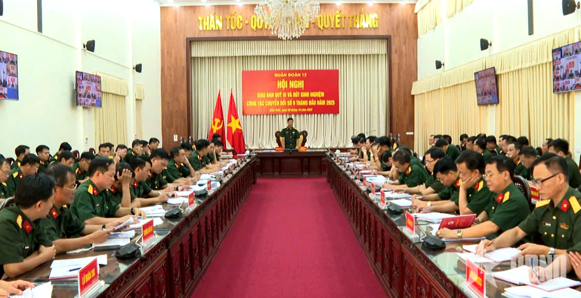 In de eerste negen maanden van 2025 werd de digitale transformatie binnen het 12e Legerkorps uitgebreid en synchroon ingezet, nauwgezet volgens de richtlijnen van de Centrale Militaire Commissie, het Ministerie van Defensie en de instructies van de bevoegde instanties. Instanties en eenheden hebben proactief plannen ontwikkeld, doelen, roadmaps en inhoud duidelijk gedefinieerd en specifieke taken toegewezen. De resultaten van de digitale transformatie zijn gekoppeld aan de hervorming van het militair bestuur, bouwvoorschriften en de verbetering van de effectiviteit van het personeelswerk, de commandovoering, de training, de logistiek en de technische ondersteuning.