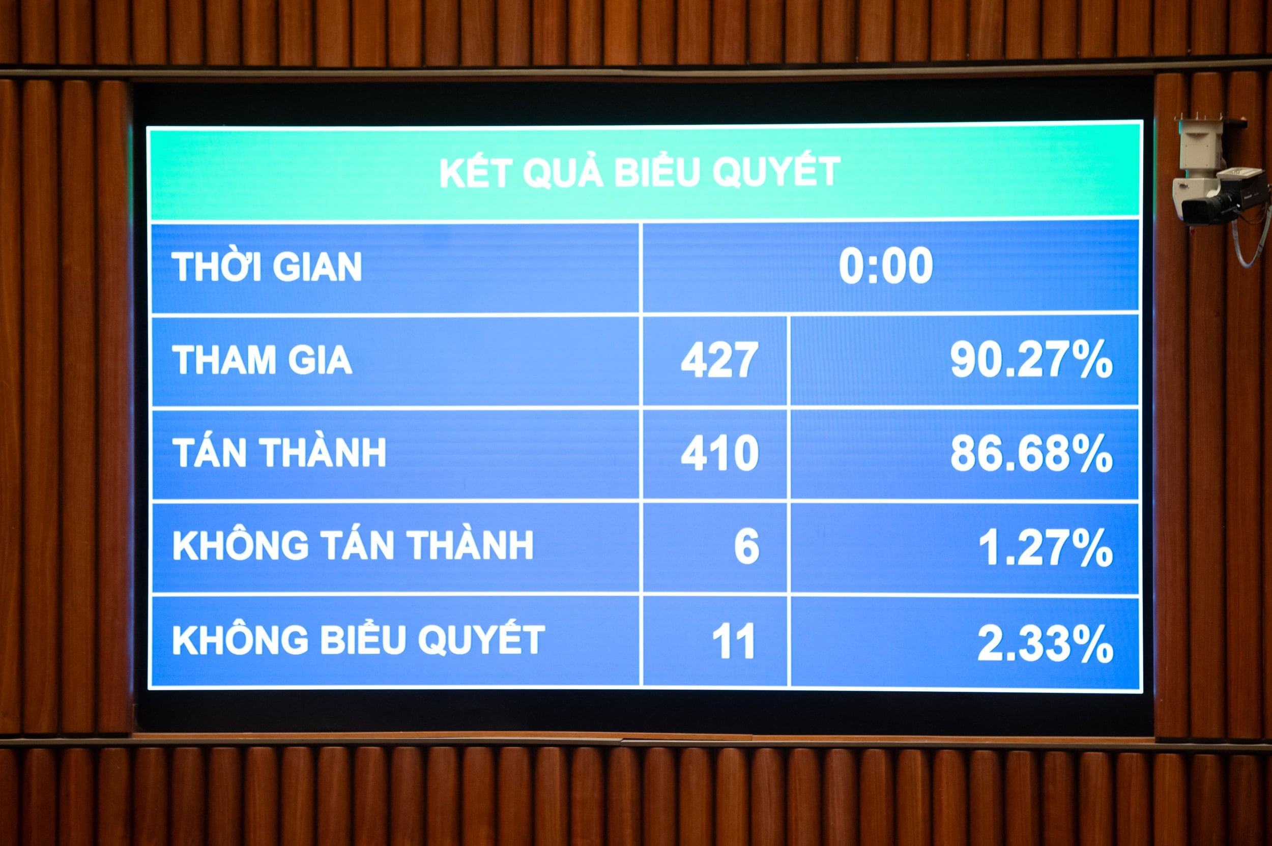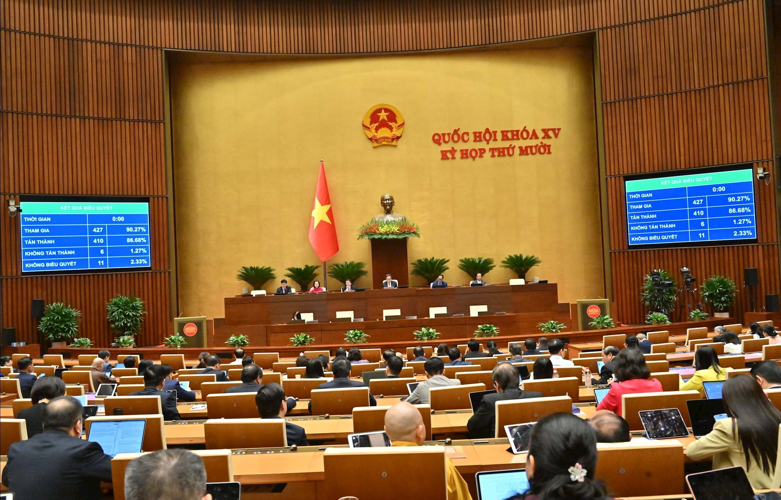 De Nationale Vergadering heeft gestemd voor de goedkeuring van de resolutie over het investeringsbeleid voor het bouwproject van de internationale luchthaven van Gia Binh. Foto: Quang Khanh.