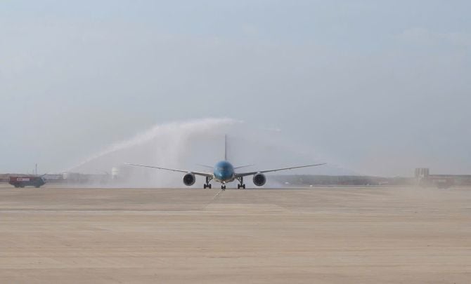 Op de middag van 15 december verwelkomde de internationale luchthaven Long Thanh (provincie Dong Nai) officieel het eerste commerciële vliegtuig van Vietnam Airlines , dat veilig landde.