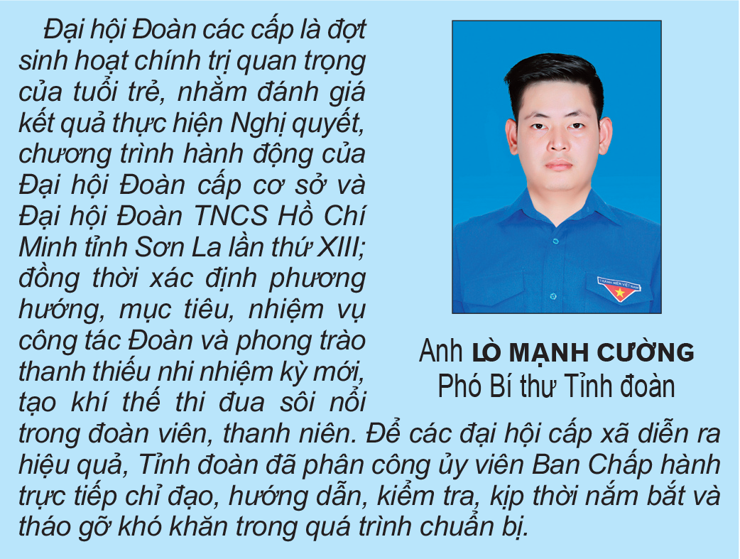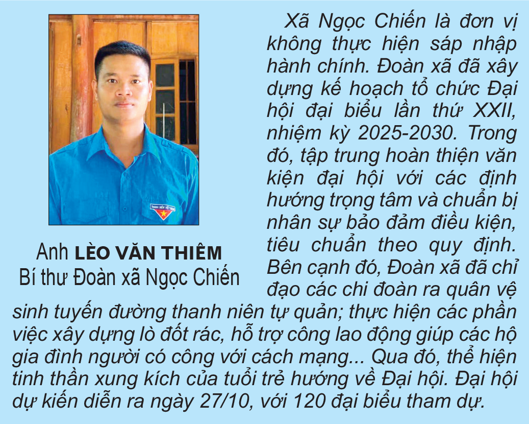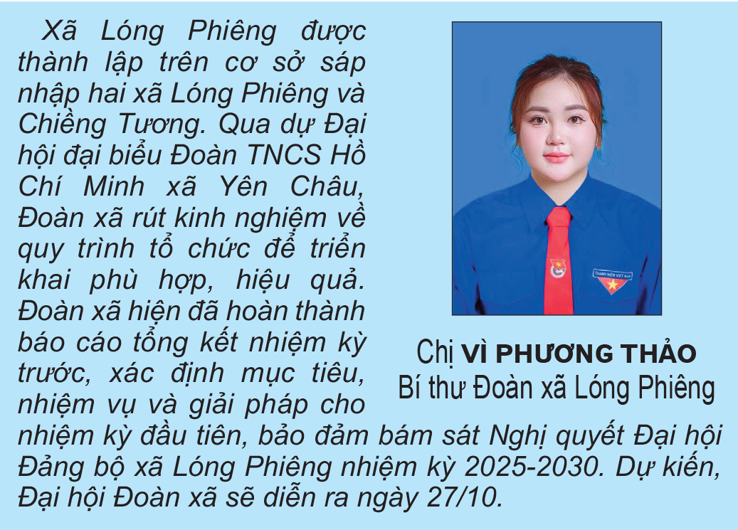 Naar verwachting zal het congres van de Jeugdbond op lokaal niveau vóór 30 oktober 2025 afgerond zijn. Met een zorgvuldige voorbereiding is het congres van de Ho Chi Minh Communistische Jeugdbond op gemeentelijk niveau voor de periode 2025-2030 van bijzondere betekenis en vormt het een basis voor de promotie van het werk van de Jeugdbond en de jeugdbeweging in de nieuwe periode. Dit is tevens een belangrijke voorbereidende stap voor het 14e congres van de Ho Chi Minh Communistische Jeugdbond in de provincie Son La, periode 2025-2030, en voor het 13e Nationale Congres van de Jeugdbond, periode 2026-2031.