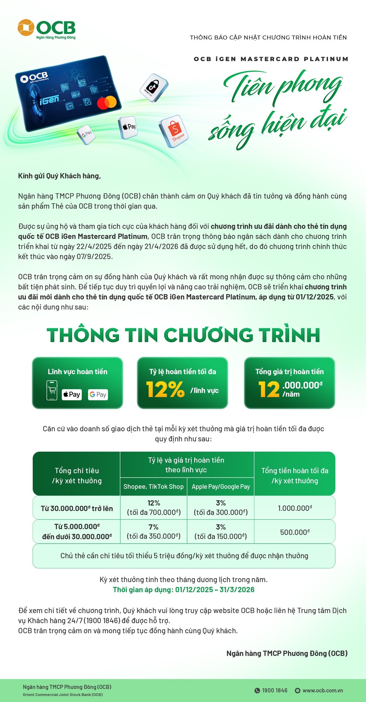 Kennisgeving van update over het OCB iGen Mastercard Platinum cashback-programma
