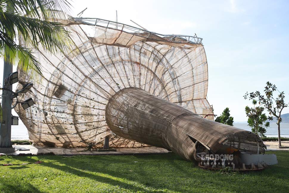Langs de straten Tay Son, Hoang Van Thu, Ngo May, Nguyen Trung Tin, Nguyen Thi Dinh en Xuan Dieu werden huizen door de wind uit elkaar gerukt, werden veel daken weggeblazen en werden bomen ontworteld, waardoor de weg werd geblokkeerd en er files ontstonden. Veel restaurants en cafés werden volledig door de wind weggeblazen en hun bezittingen raakten zwaar beschadigd. Foto: Hoai Phuong