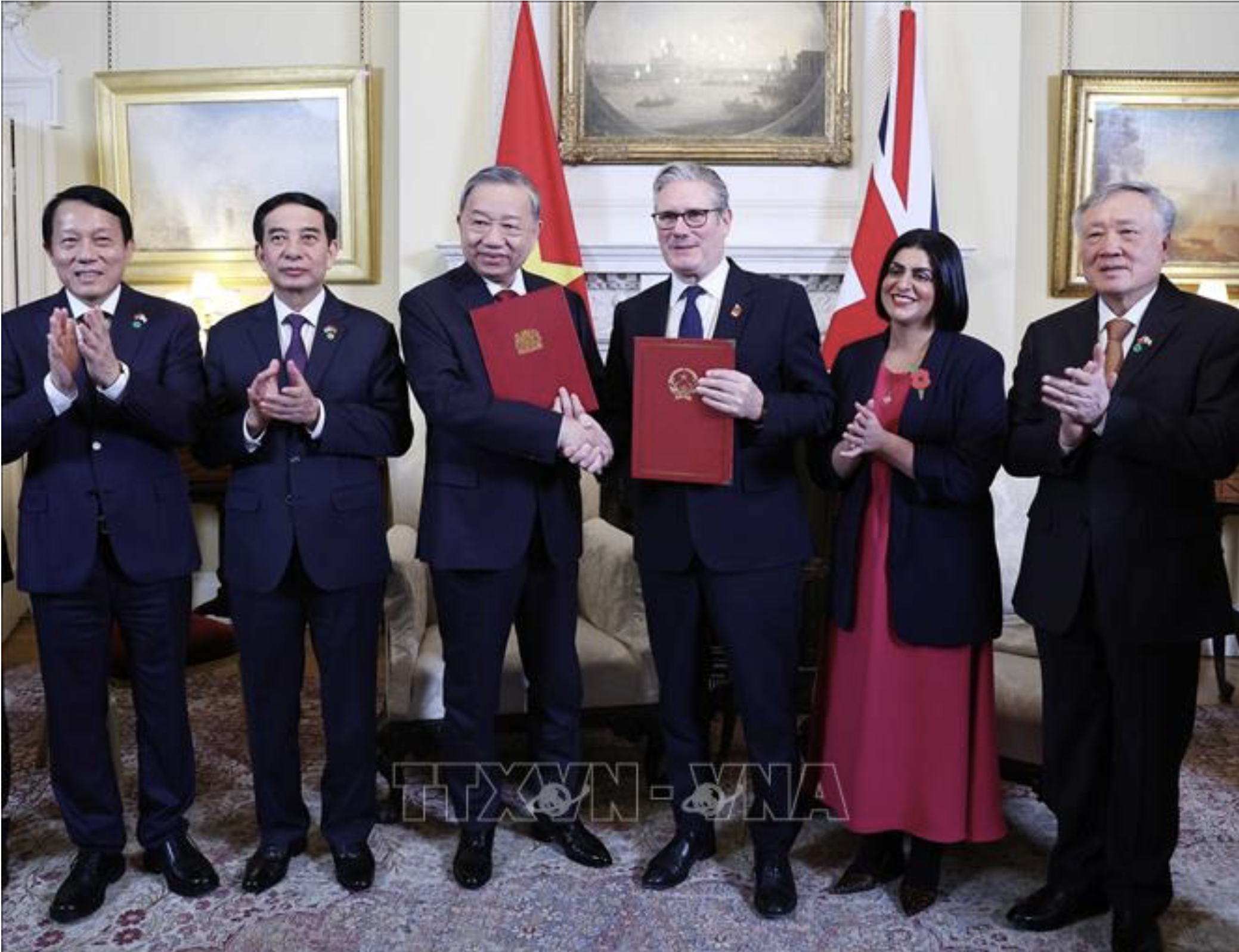 In de middag van 29 oktober (Britse tijd, vroege ochtend van 30 oktober Vietnamese tijd), direct na de gesprekken, gaven secretaris-generaal Lam en de Britse premier Keir Starmer gezamenlijk een verklaring uit over de oprichting van het uitgebreide strategische partnerschap tussen Vietnam en het Verenigd Koninkrijk.