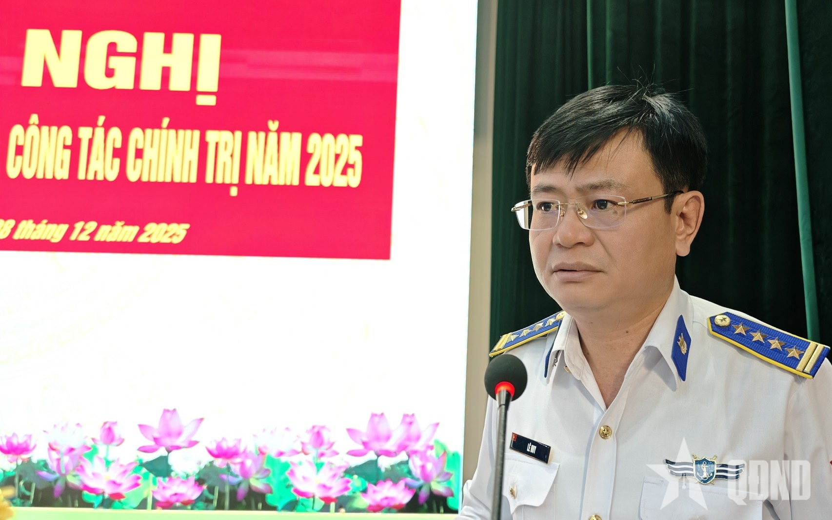 Kolonel Le Huy, politiek commissaris van kustwachtregio 2, sprak op de conferentie. |