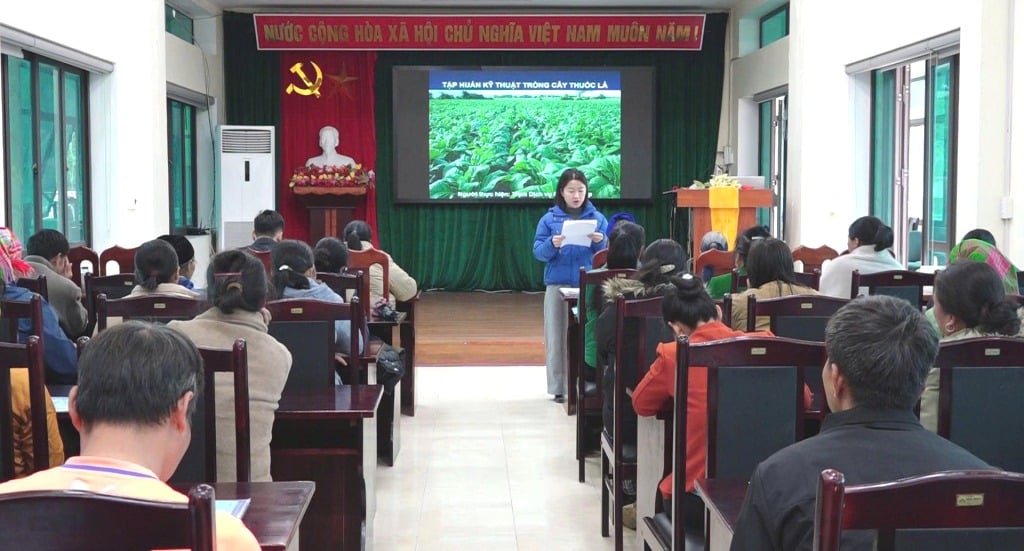På opplæringsklassen ble husholdningene introdusert for og diskutert om produksjonsteknikker i planteskoler; teknikker for å dyrke tobakk på åkeren; teknikker for tobakkhøsting og -tørking; instruksjoner om hvordan man steller tobakksplanter; forebygging og kontroll av skadedyr og sykdommer; toppskjæring og fjerning av skudd... Samtidig ble husholdningene som deltok i opplæringsøkten støttet med gjødsel og finansiering til å bygge tobakkstørkeovner, hvorav støtte til nybygging var 5 millioner VND/husholdning og reparasjonsstøtte var 2 millioner VND/husholdning.