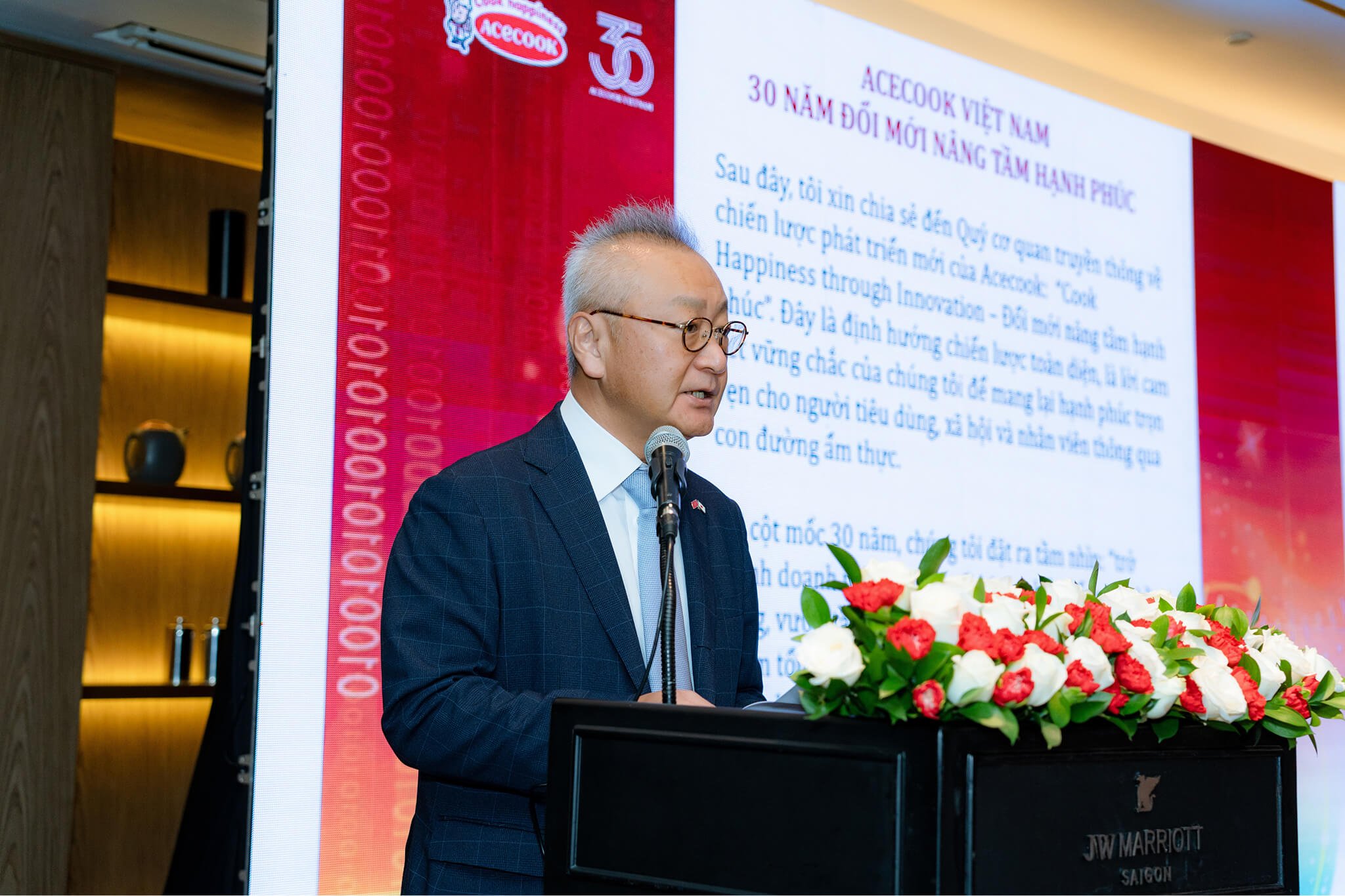 Daglig leder i Acecook Vietnam - Kaneda Hiroki - annonserte den nye utviklingsstrategien «Cook Happiness Through Innovation - Innovation Enhancing Happiness».