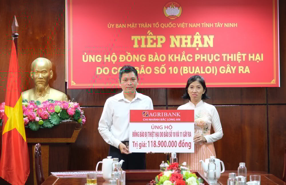 Følgelig bidro de ansatte og de ansatte ved Agribank Bac Long An-filialen med totalt 138,9 millioner VND, hvorav 20 millioner VND ble sendt for å støtte mennesker i Thai Nguyen-provinsen, for å hjelpe folk med å raskt overvinne vanskeligheter og stabilisere livene sine; samt støtte til Vietnams fedrelandsfrontkomité i Tay Ninh- provinsen med 118,9 millioner VND for å fortsette overføringen til mennesker i skadede områder.