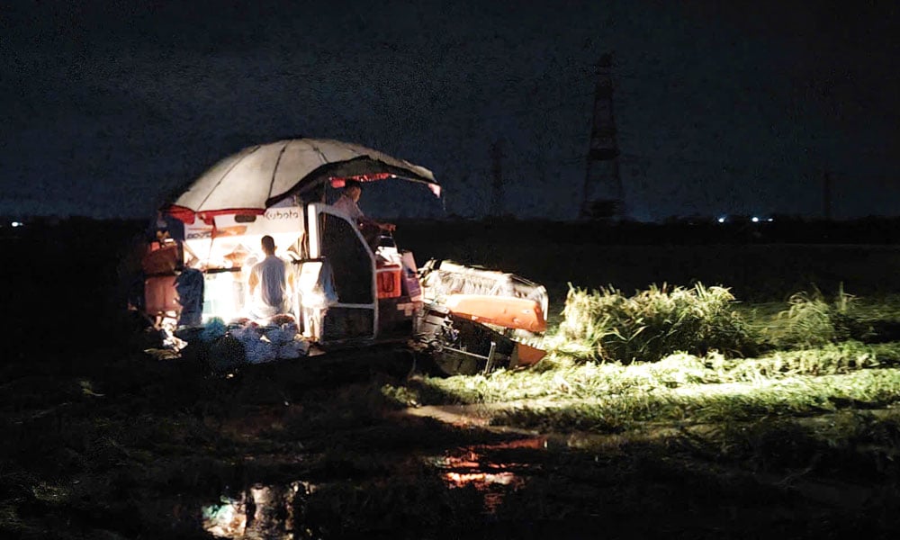 Takket være den økte styrken kombinert med bruk av maskiner, var det høstet dusinvis av tonn ris innen nesten midnatt. |