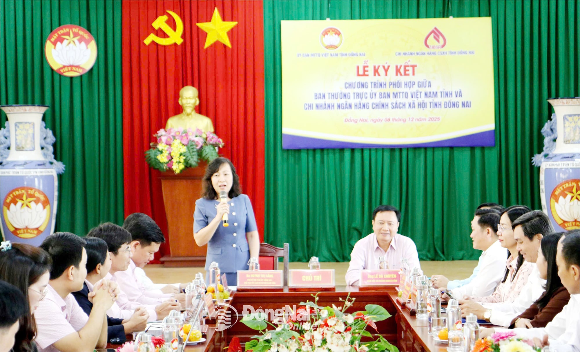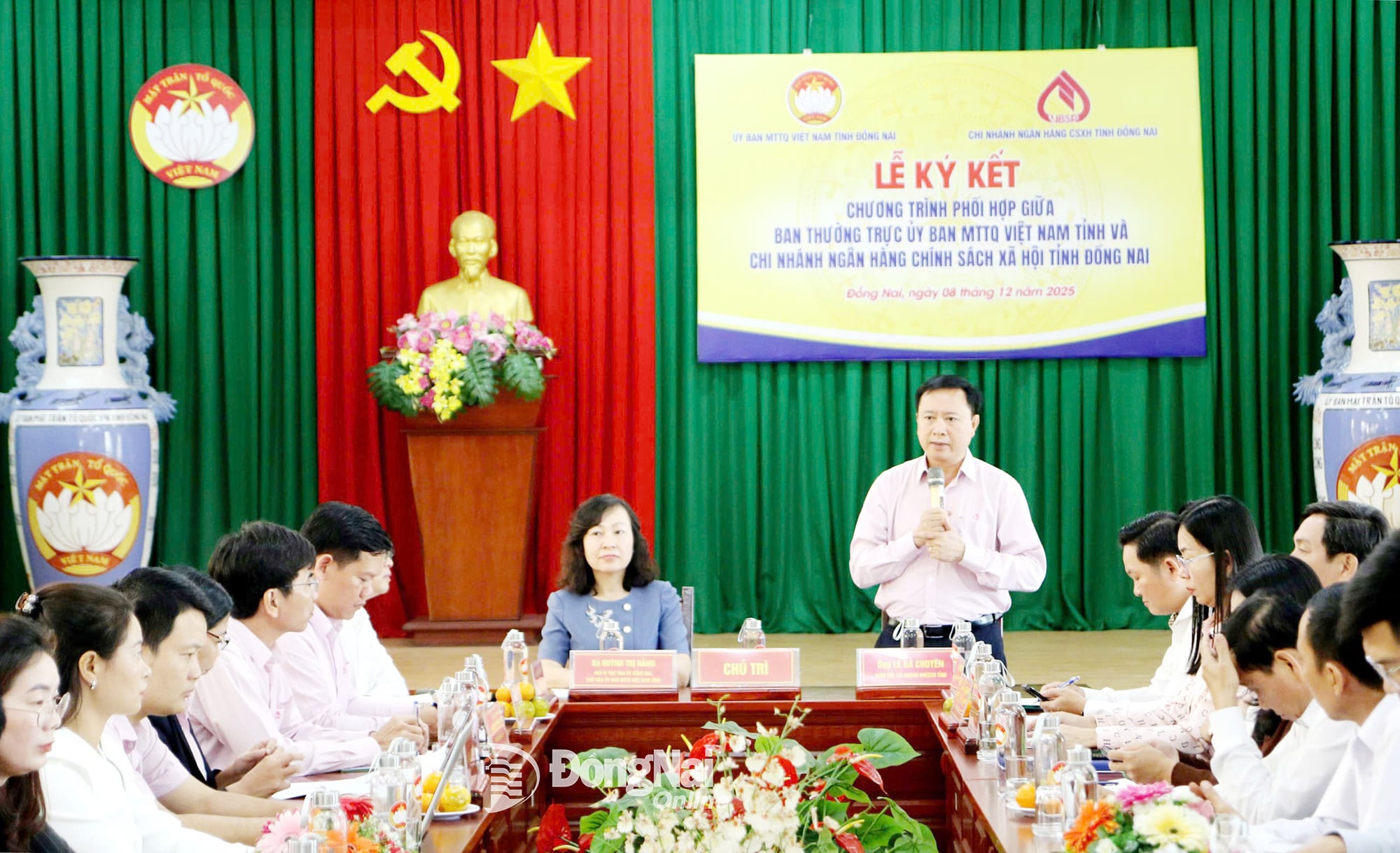 Under seremonien signerte medlem av den provinsielle partiets stående komité, den faste nestlederen i Vietnams fedrelandsfrontkomité i Dong Nai-provinsen, Ha Anh Dung, på vegne av den stående komiteen i Vietnams fedrelandsfrontkomité i Dong Nai-provinsen, og direktøren for Banken for sosialpolitikk-avdelingen i Dong Nai-provinsen, Le Ba Chuyen, et koordineringsdokument.