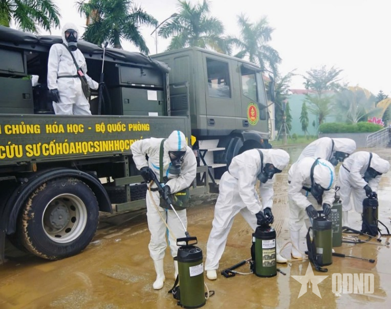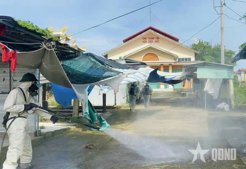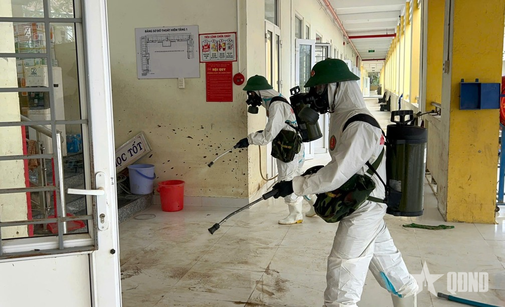 | Kjemisk brigade 88 sprayer desinfeksjonsmiddel i Hoa Thinh kommune ( Dak Lak ). |