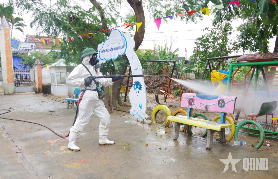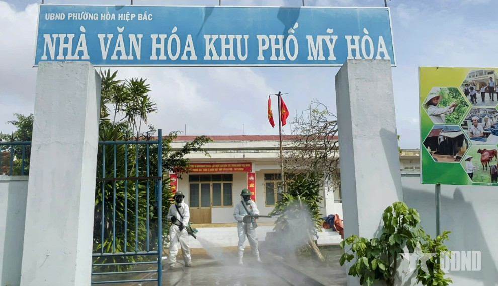 | Desinfeksjon og rengjøring av kulturhusets campus og flomskjermingen i My Hoa-området (Phu Yen-distriktet, Dak Lak-provinsen). |