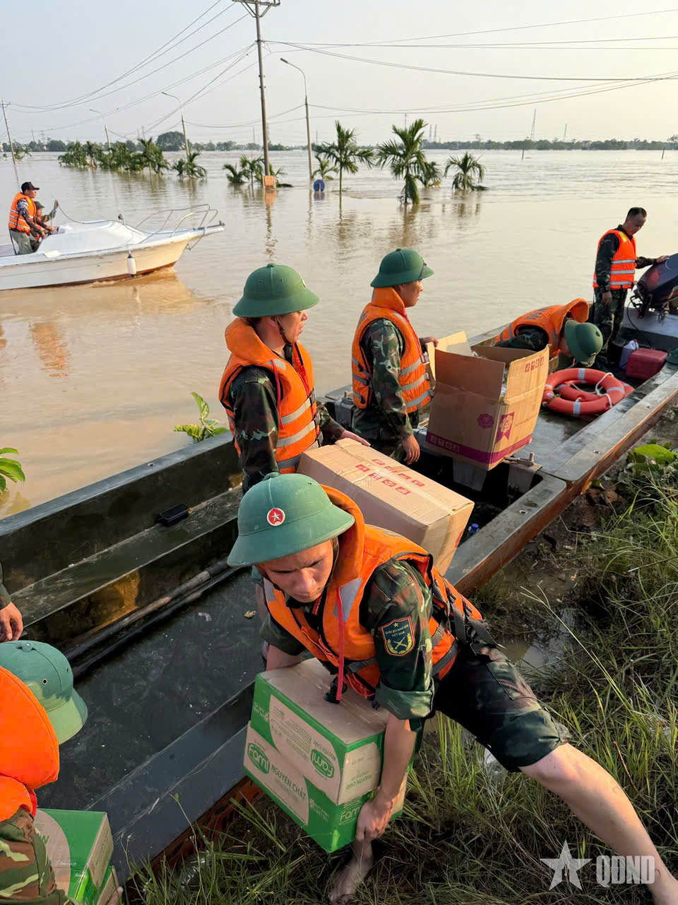 Med ånden «der folk er i nød, er det soldater», deltok enhetens styrker i å levere nødvendigheter til husholdninger i Trung Thanh-distriktet i Thai Nguyen- provinsen. Selv om terrenget var gjørmete, var det fortsatt hindringer spredt på veien, og noen steder der vannet ikke hadde trukket seg helt tilbake, noe som gjorde reisen vanskelig og til og med farlig, jobbet soldatene fortsatt raskt, ikke redde for vanskeligheter, for å nå og støtte så mange mennesker som mulig med ånden av å vie seg til folket.