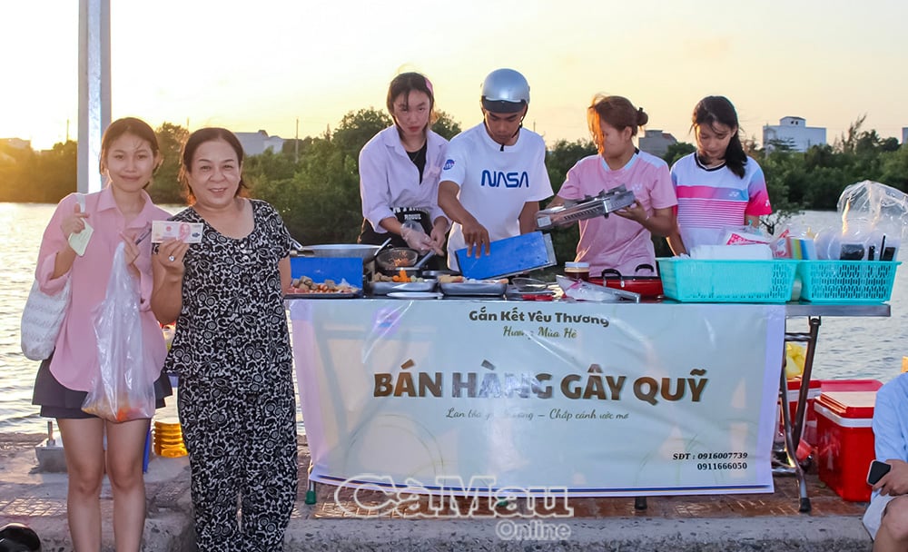 Bui Anh Ngoc (venstre forside) og gruppen «Connecting Love» organiserer hurtigmatsalg for å samle inn penger til veldedighetsaktiviteter.