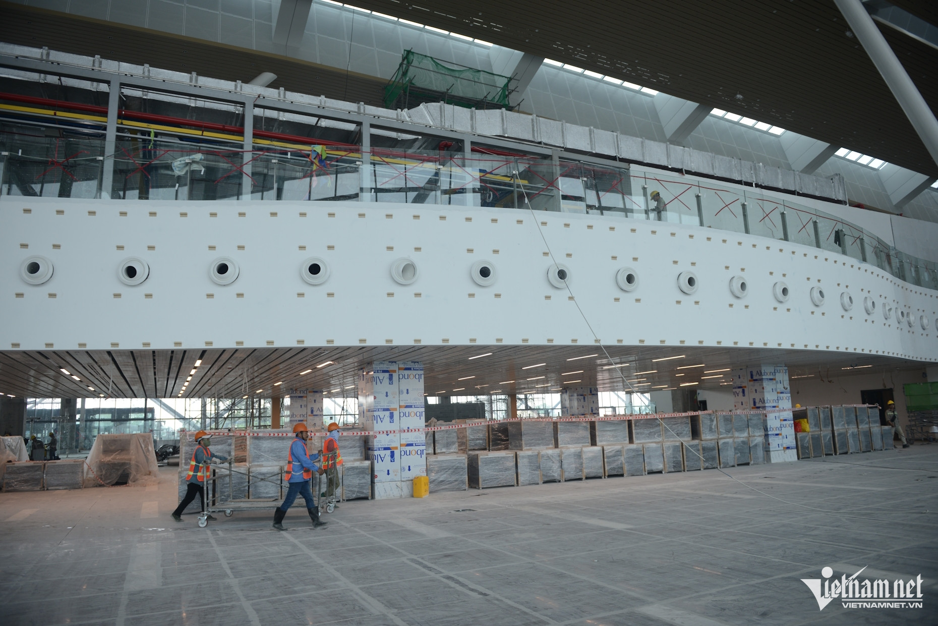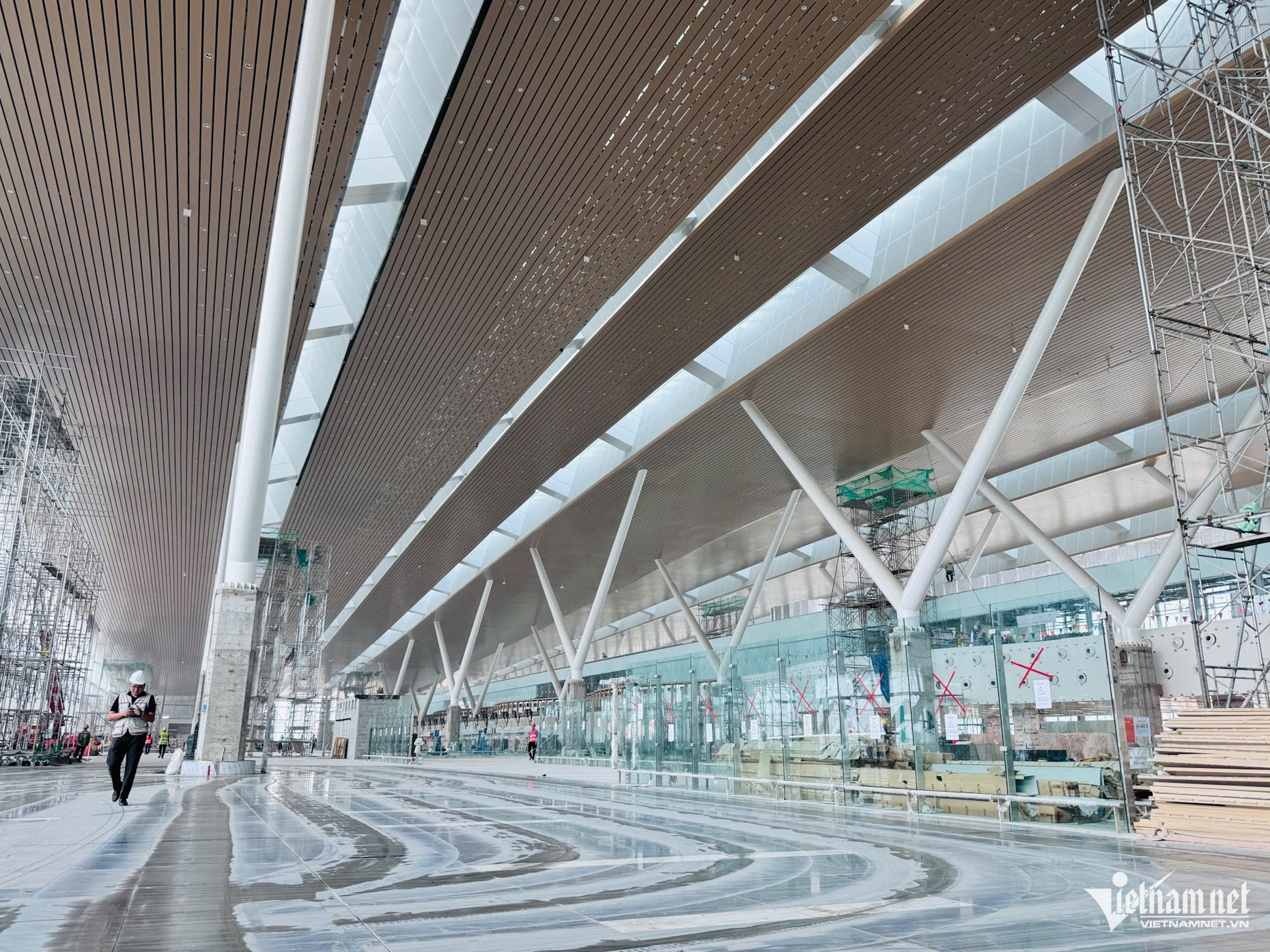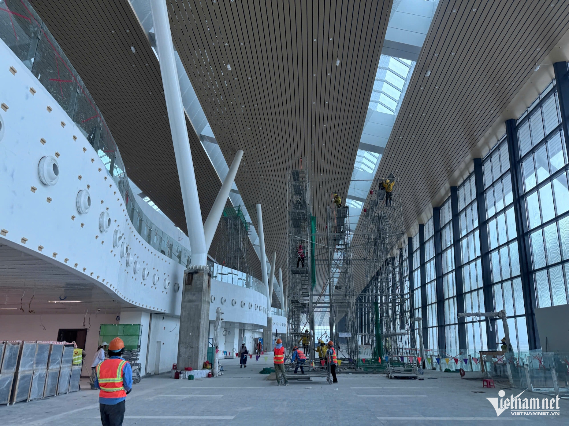 Der 100 % ferdigstilte elementer som passasjerterminalen med grov arkitektur, ståltakkonstruksjon, aluminiumstak, glassvegger... De gjenværende delene som terminalens steingulv, tak, toaletter, elektrisk utstyr, klimaanlegg, ventilasjon, heiser og rulletrapper, teleskopbroer, bagasjetransportører, røntgenmaskiner, brannvern... er under aktiv bygging.
