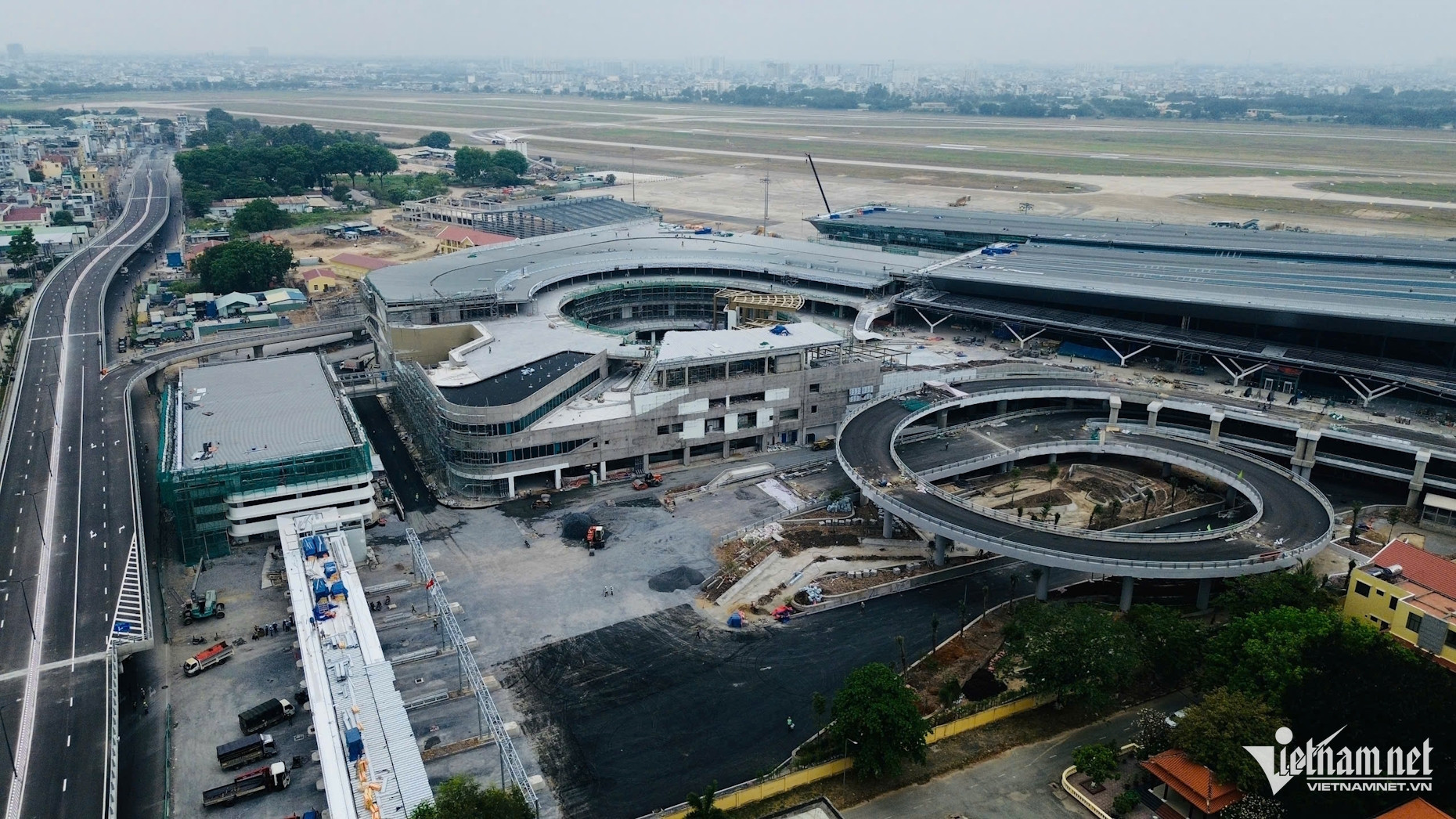 De viktigste byggeprosjektene, inkludert passasjerterminalen, parkeringshuset kombinert med ikke-luftfartstjenester, brosystemet foran terminalen og flyparkeringsplassen, er i hovedsak ferdigstilt. På bildet er veien som forbinder Tran Quoc Hoan - Cong Hoa, med en kostnad på over 4800 milliarder VND, også sømløst forbundet.