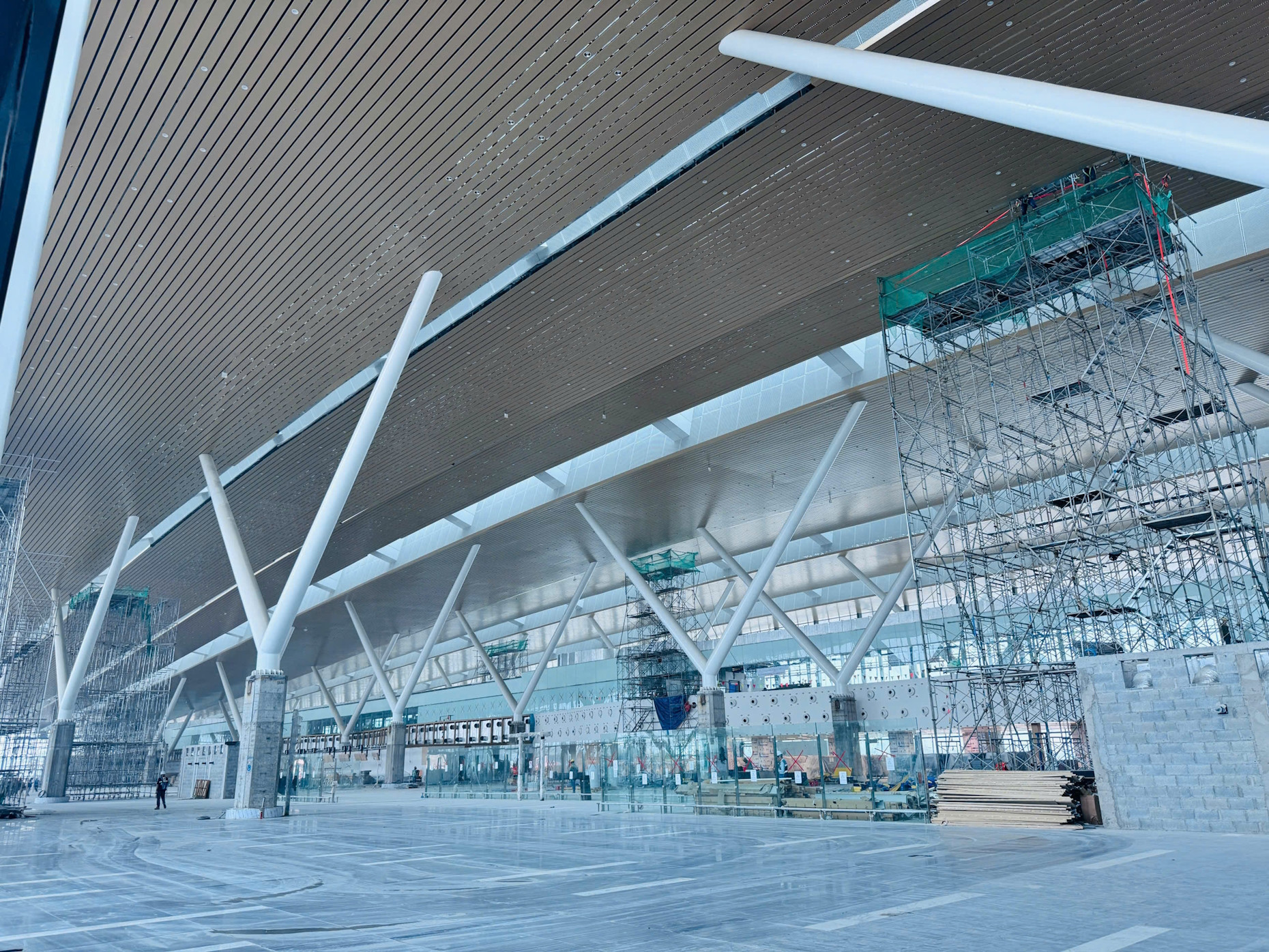 Inne i T3-terminallobbyen er elementene nesten ferdigstilt og arrangeres i henhold til tegningen. Den elektromekaniske konstruksjonen av hele prosjektet er 97 % fullført, og de viktigste lavspenningssentralene, fordelingssentralene, belysningssystemene, kabelbåndene, belysningssystemene for flyparkering og kjøretøyparkering er også ferdigstilt.