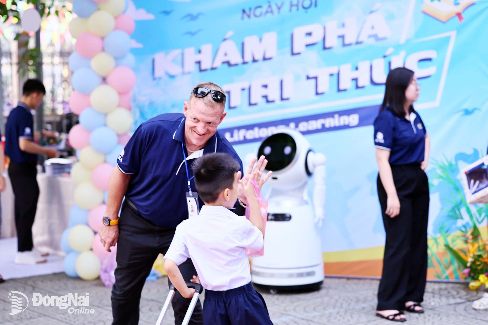 Elever samhandler trygt med utenlandske lærere som deltar i aktiviteter under Uken for livslang læring. Foto: Cong Nghia |