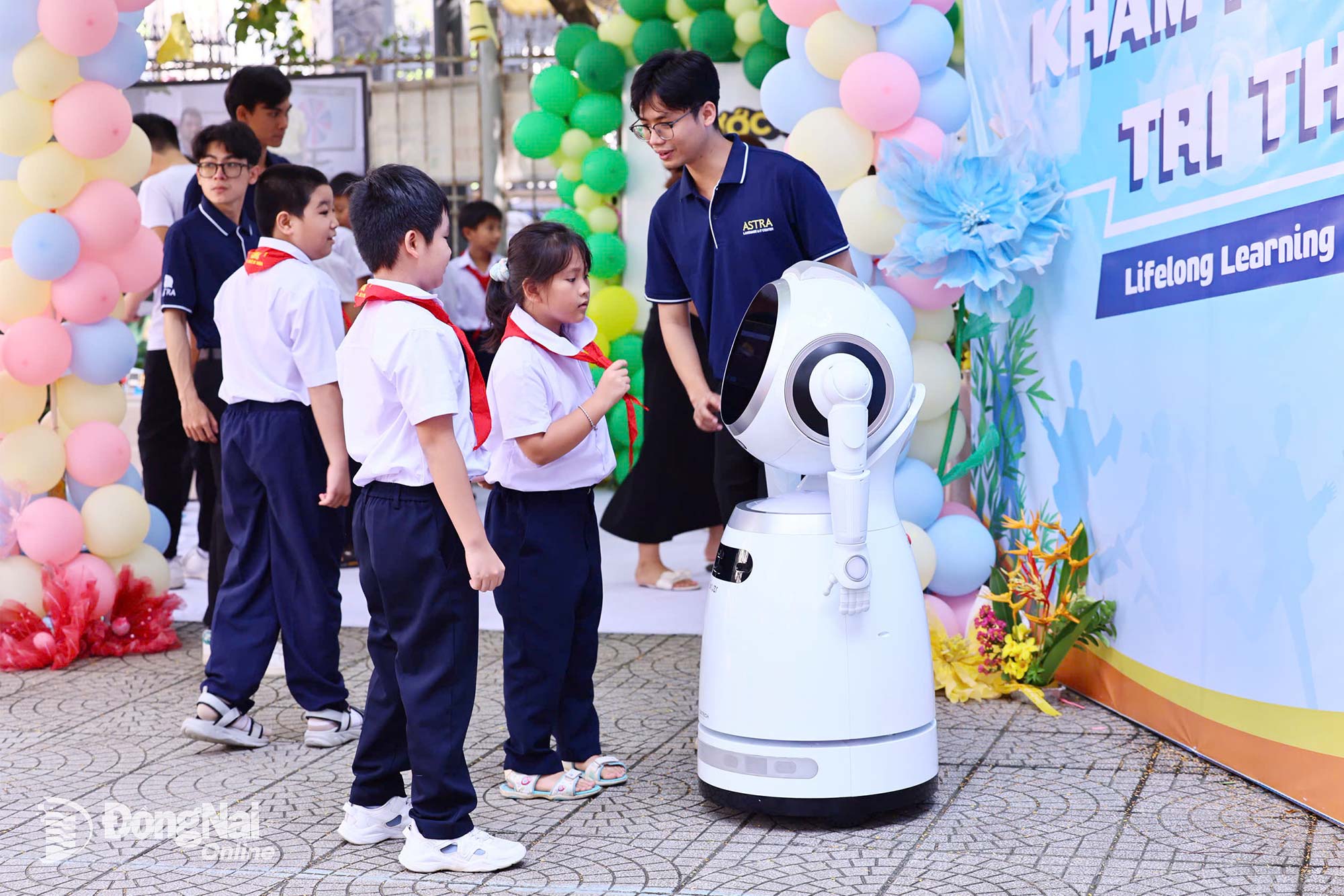 Elever ved Phan Chu Trinh barneskole samhandlet for første gang med en kunstig intelligens-robot fra Astra Bien Hoa Information Technology - Foreign Language Center. Foto: Cong Nghia |