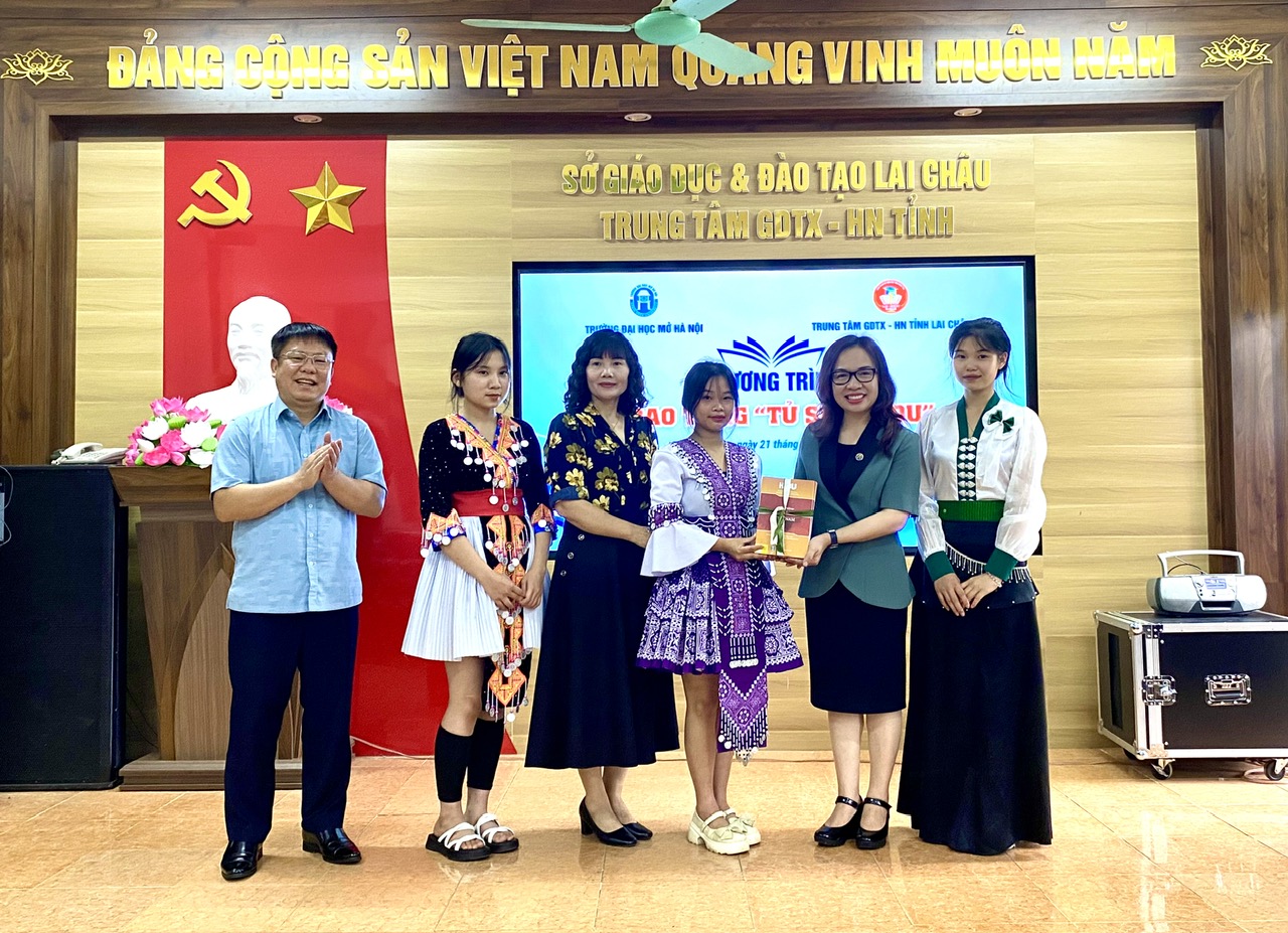 Delegasjonen overrakte derfor HOU-bokhyllen med totalt 771 titler, 1269 bøker, inkludert oppslagsverk, lærebøker, litteratur og politiske bøker, til Lai Chau -provinsens senter for videreutdanning og yrkesveiledning.