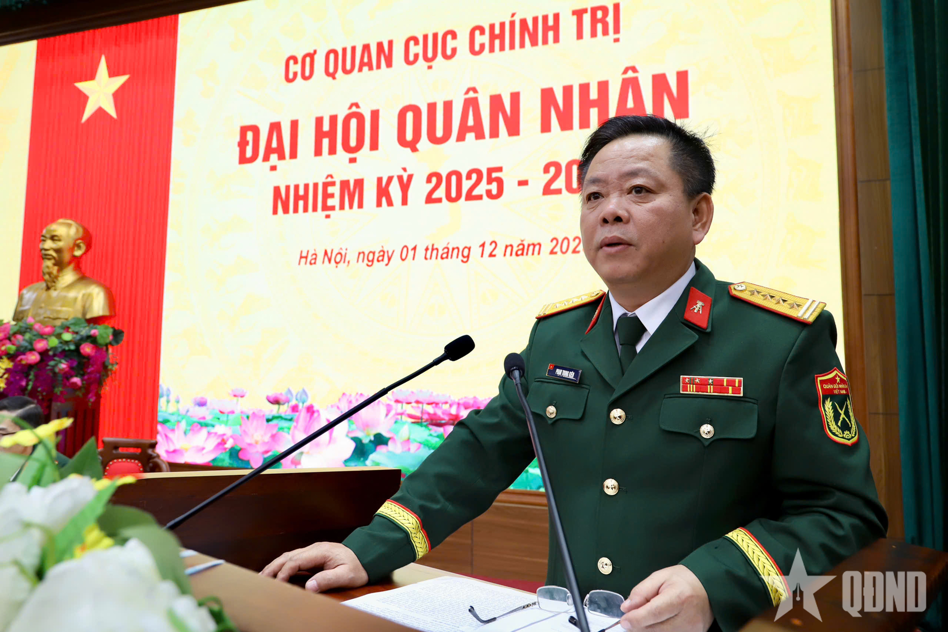 | Oberst Pham Trung Kien, partisekretær, assisterende direktør for den politiske avdelingen i det generelle departementet for logistikk og teknologi, holdt en tale der han ledet kongressen. |