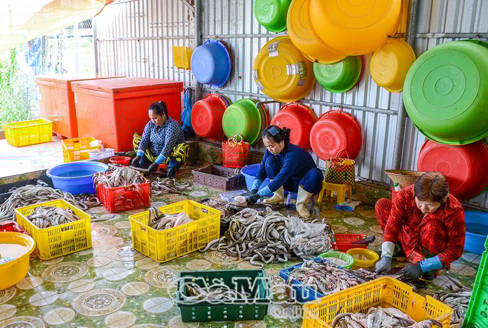Fru Nguyen Bich Tiens Kieu Nuong 2-kooperativ for tørket blekksprut skaper også arbeidsplasser for mer enn 20 lokale arbeidere, spesielt kvinnelige arbeidere.