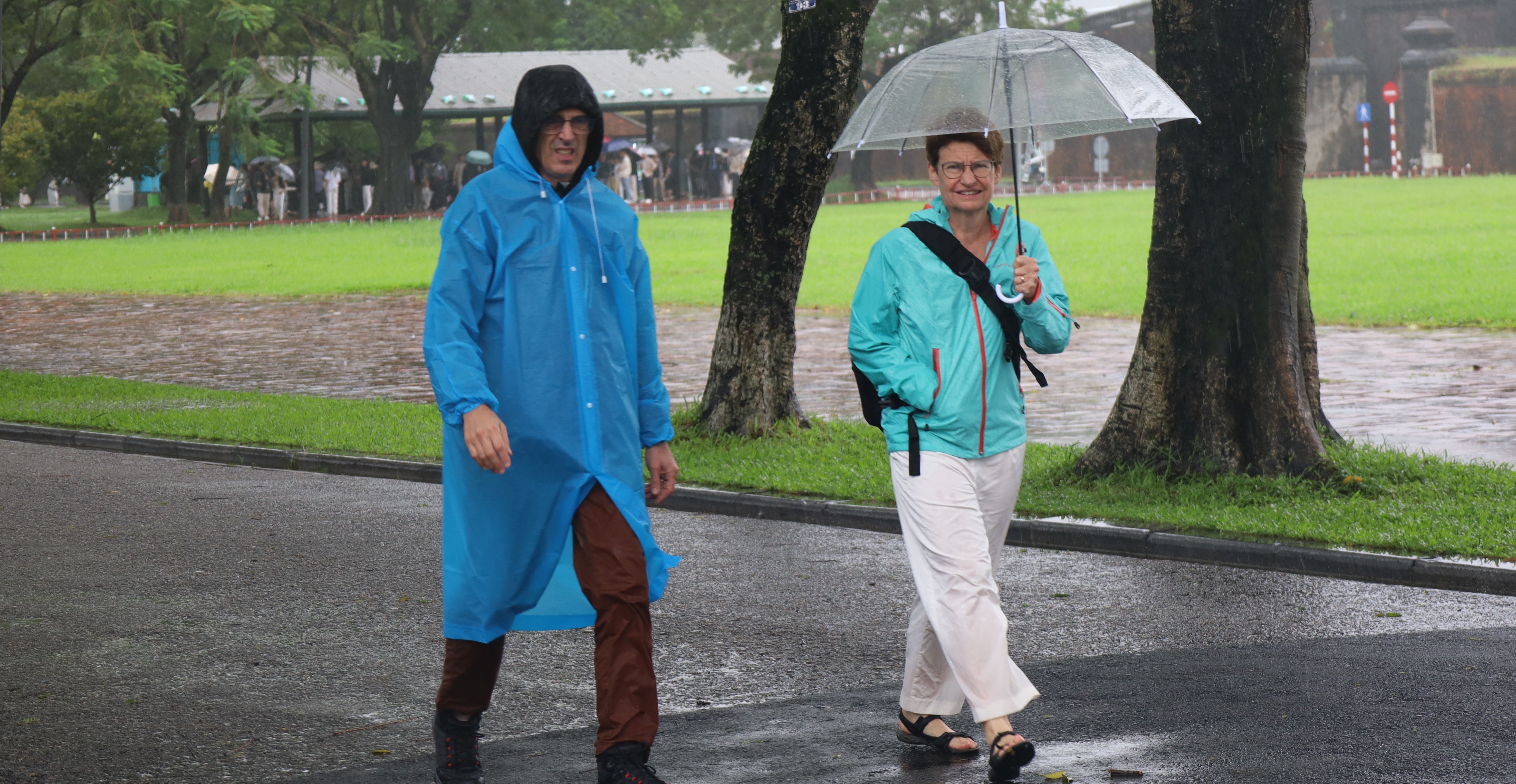 Fru Duong Thi Cong Ly, direktør for Vietnam-Hanoi Tourism Joint Stock Companys Hue-avdeling, sa at selskapet fortsatt kan bringe besøkende til noen relikviesteder, mausoleer og steder i høytliggende terreng som ikke er oversvømmet. «Vi er også fleksible med besøkende om å justere og erstatte utendørsopplevelser med innendørsopplevelser, som å lære og oppleve emalje, bambus, røkelsefremstilling osv.»