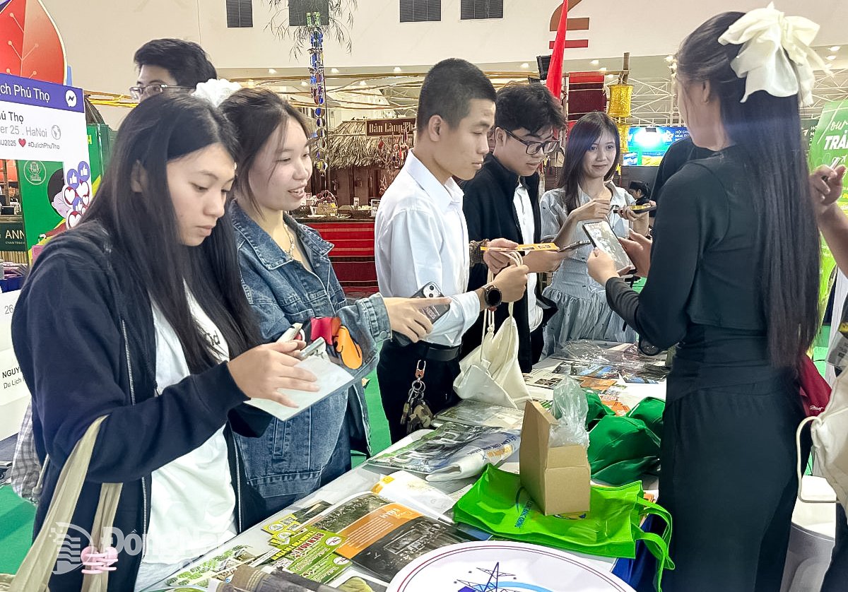 Med ønsket om å stimulere lokal turisme og direkte introdusere og markedsføre selskapets typiske produkter, sa direktør for Tri An Adventure Pham Hoang Quoc Bao: Mange besøkende kom til standen for å lære om selskapets produkter og motta gaver.