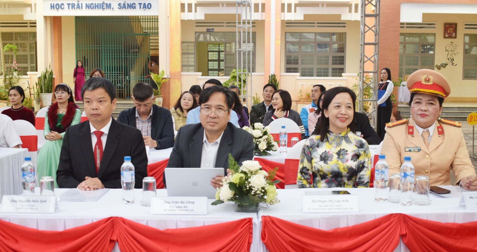 Til stede på seremonien var Nguyen Huu Que – medlem av den provinsielle partikomiteen og nestleder i den provinsielle folkekomiteen; Shinsuke Horiuchi, visedirektør i Honda Vietnam Company; representanter fra den nasjonale trafikksikkerhetskomiteen og trafikkpolitiavdelingen; ledere for relevante avdelinger og avdelinger i provinsen, sammen med alle ansatte, lærere, elever og 250 foreldre ved Le Quy Don barneskole.