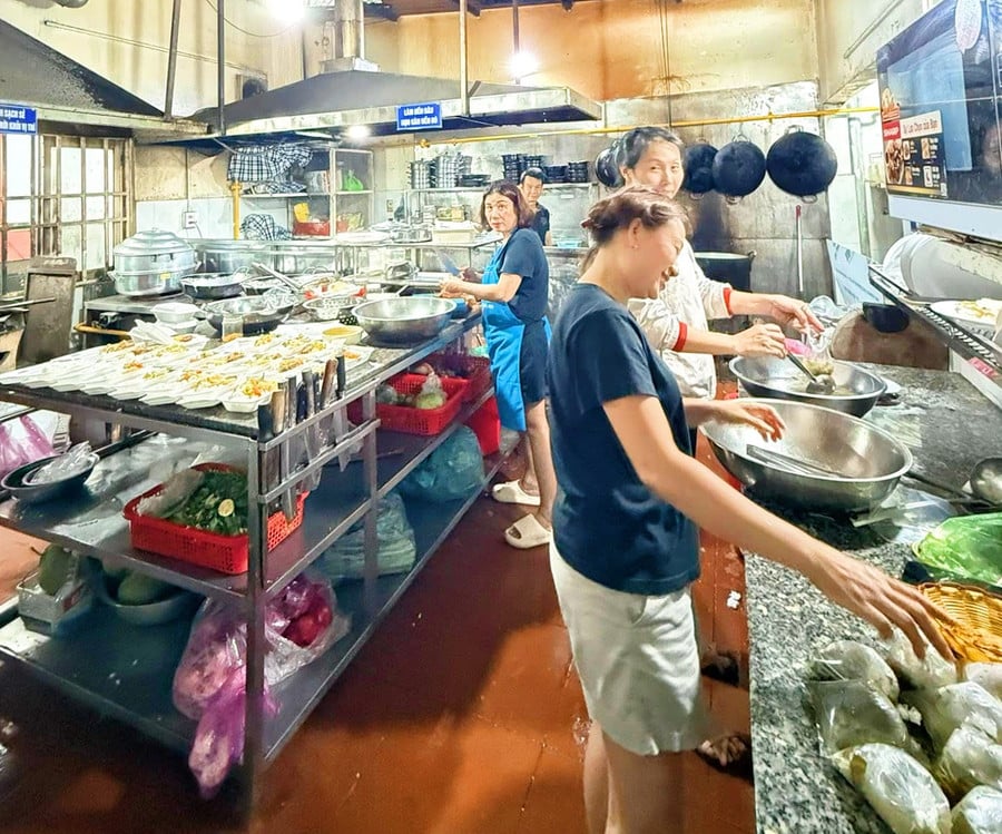 Restaurantpersonalet i Binh Ha lagde 200 måltider for å støtte flomofre i Quy Nhon-distriktet. Foto: DVCC