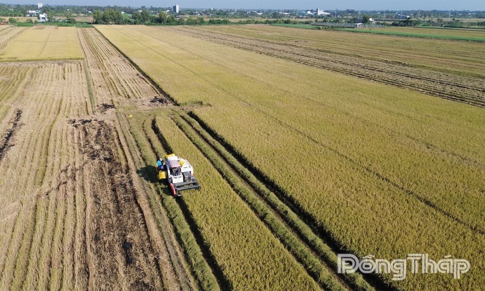 I den østlige regionen av Dong Thap -provinsen går bøndene inn i den høyeste innhøstingsperioden for høst-vinter-risavlingen.