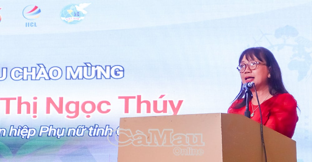 Fru Nguyen Thi Ngoc Thuy, visepresident i kvinneforbundet i Ca Mau- provinsen, holdt åpningstalen og ga en oversikt over koordineringsarbeidet for prosjektgjennomføringen.