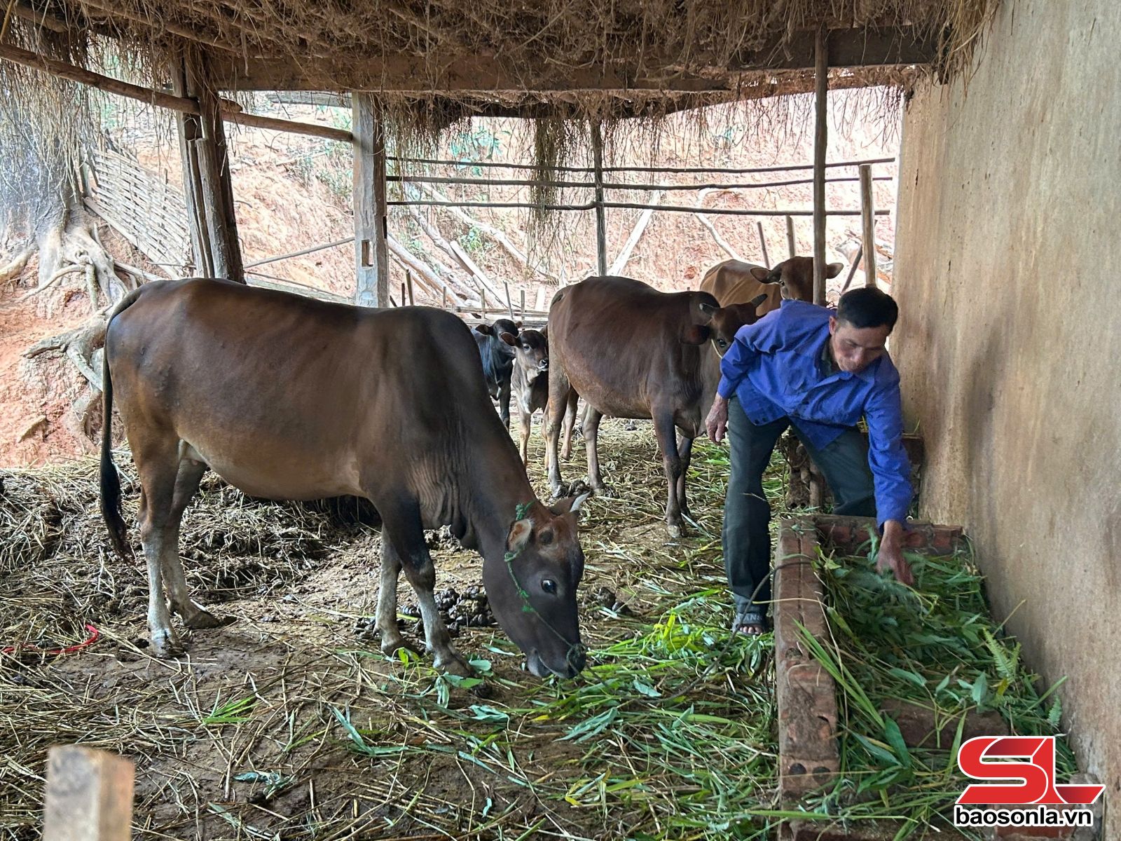 Familien til Lo Van Hai fra landsbyen Nuong Ha er en av husholdningene som drar nytte av prosjektet. Sammen med tjenestemenn fra Muong Khieng kommune besøkte vi Lo Van Hais familie akkurat da de holdt på å dekke til fjøset sitt for å beskytte kyrne mot kulden. Lo Van On, faren til Lo Van Hai, sa: «Sønnens familie er en fattig husholdning. I mars i fjor mottok vi en avlsku fra statens program 1719. Kua er en svært verdifull ressurs for familien vår. Nylig fødte kua en kalv, og familien er veldig lykkelig. Sønnen min jobber langt unna, så hver dag hjelper jeg ham med å ta vare på kua og sørger for at den vokser og utvikler seg godt. Jeg håper flokken fortsetter å vokse slik at familien vår kan utvikle en bærekraftig økonomi .»