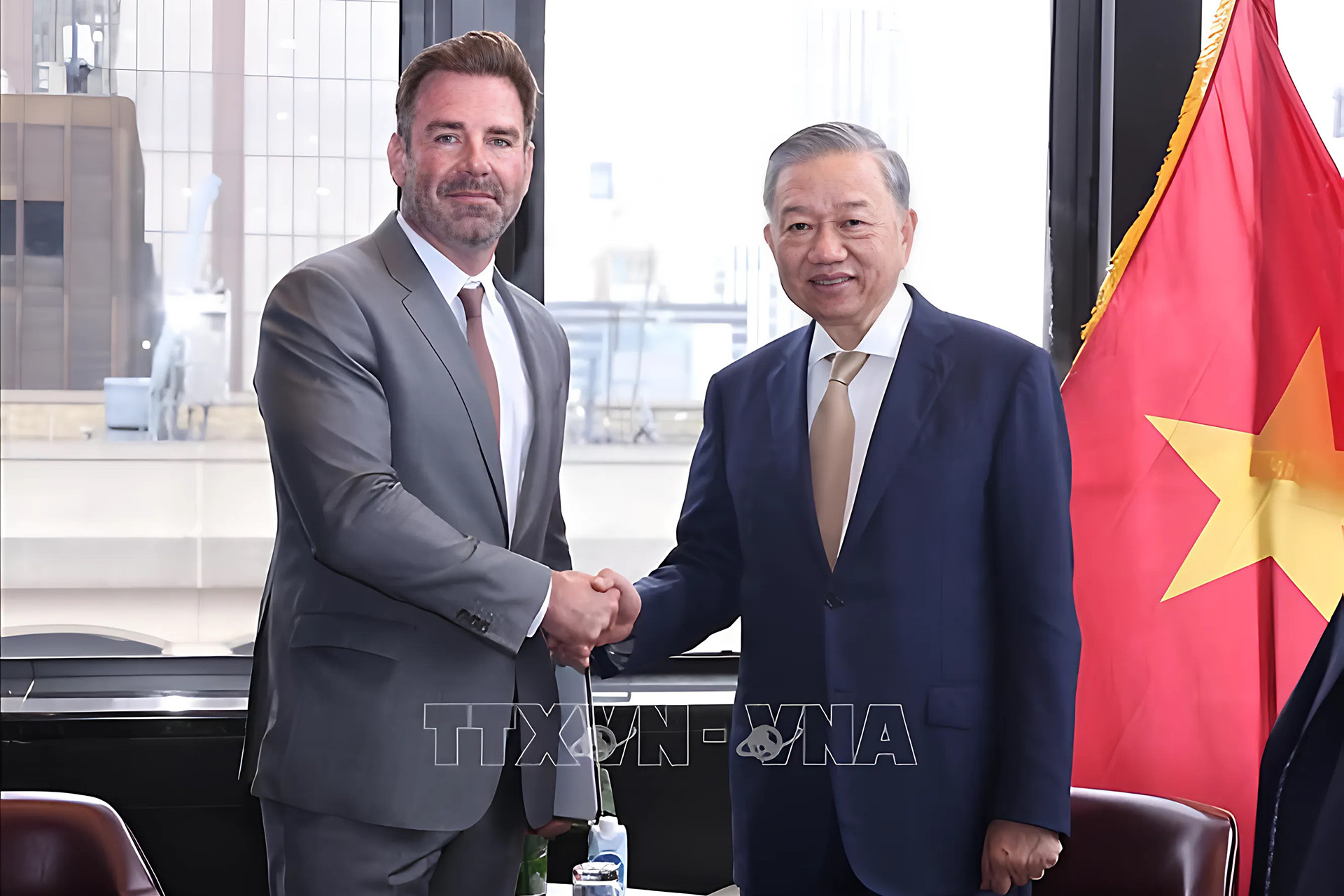 Generalsekretær To Lam tok imot Apples visepresident for globale myndighetsrelasjoner, Nick Ammann. Foto: Lam Khanh/VNA