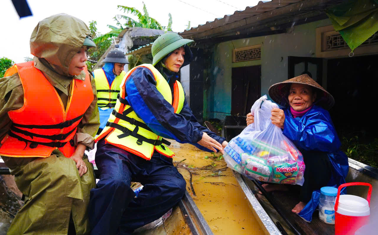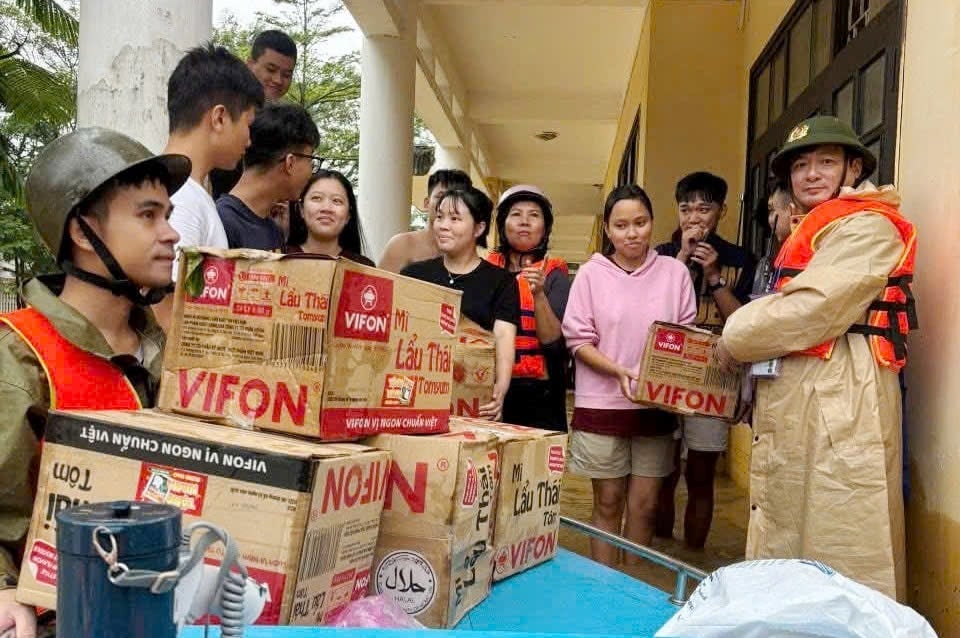 I løpet av perioden med langvarig kraftig regn og stigende flomvann som forårsaket dyp oversvømmelse av mange veier, transporterte politiet i Phu Xuan-distriktet raskt 200 esker med hurtignudler, støttet av velgjørere, til rundt 300 studenter som bodde på Hue Universitys sovesal i bydelen, i tillegg til mange studenter som leide rom og husholdninger som manglet mat.