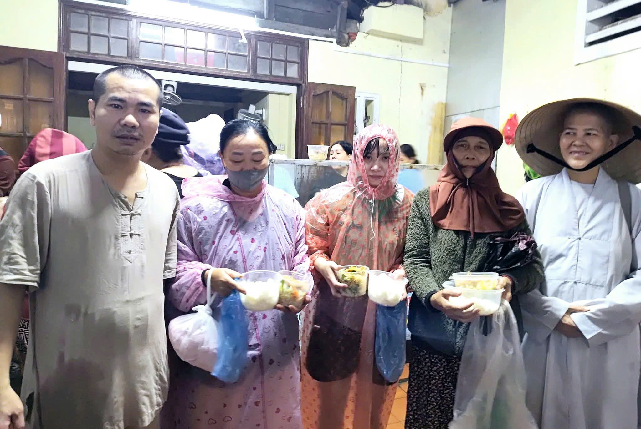 I løpet av de siste dagene med flom mobiliserte Phat Quang-pagoden (Thuan Hoa-distriktet) menneskelige ressurser og forberedte mat for å opprettholde veldedighetsmåltider som skal sendes til mennesker i vanskelige kår i oversvømte områder.