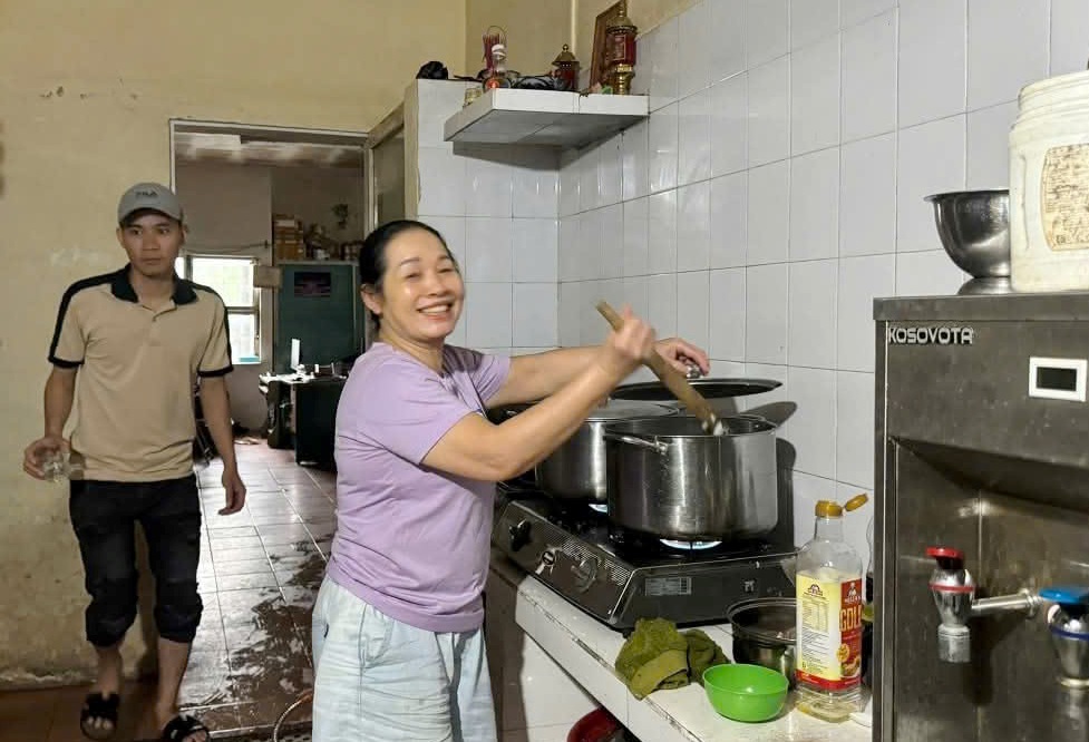 Samme dag organiserte Phat Thien Tam Association (Thuan An-distriktet) også matlaging og utdeling av 1500 måltider til folk i lavtliggende og dypt oversvømte områder. Måltidene fylte med varme av kjærlighet og hengivenhet, og hjalp folk til å være mer standhaftige i å overvinne vanskeligheter under flommen.