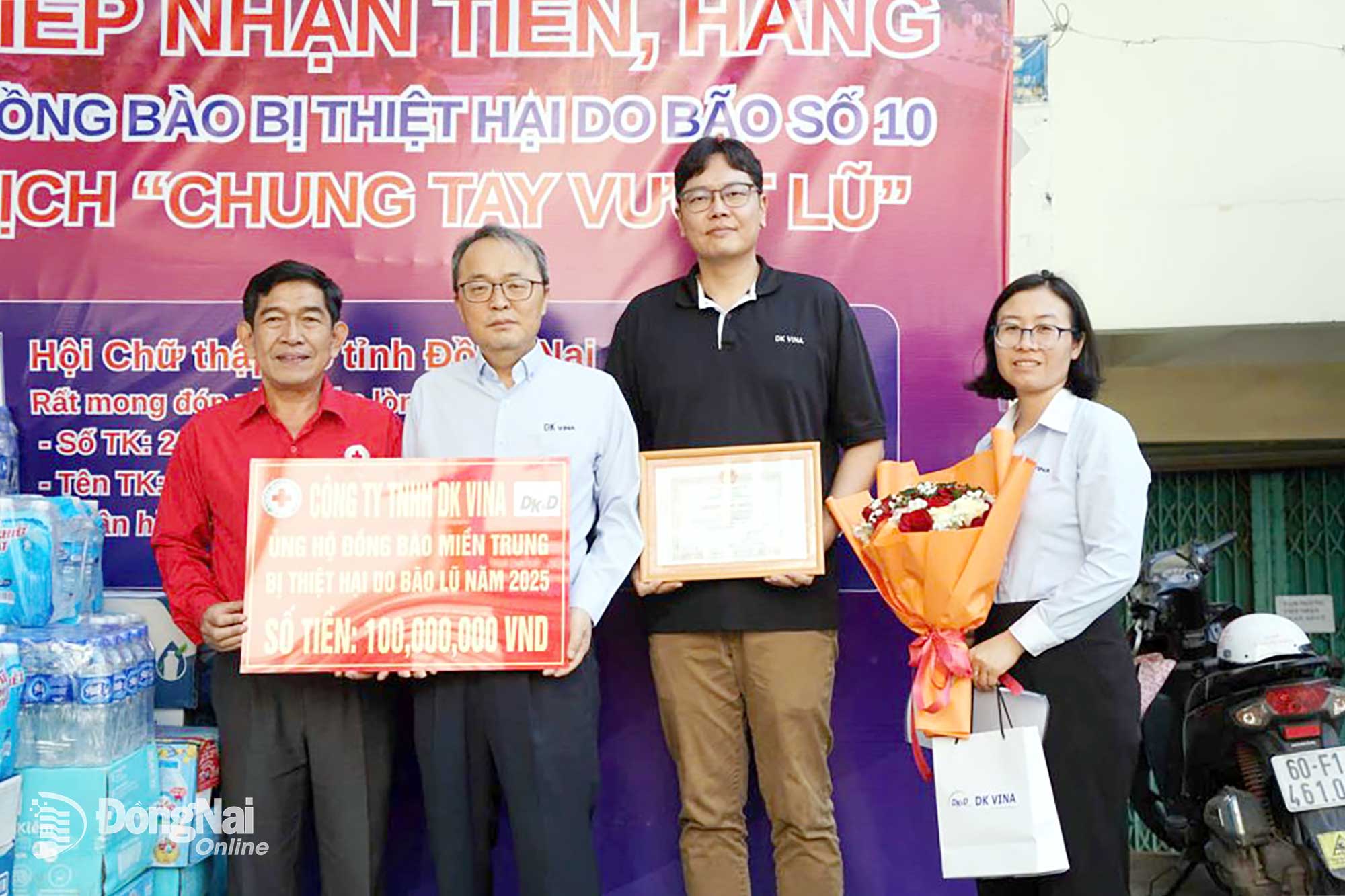 Ved donasjonsseremonien sa generaldirektøren i DK Vina Park Jong Heon Co., Ltd.: Etter informasjonen om flomsituasjonen som forårsaker store skader i de sentrale provinsene, ønsker styret og selskapets ansatte å bidra med en liten del for å dele vanskelighetene og raskt hjelpe folk med å stabilisere livene sine snart. Dette er også en aktivitet som demonstrerer samfunnsansvaret til bedrifter som opererer i Dong Nai .