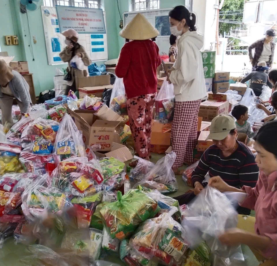Foreningen mobiliserte og donerte derfor mer enn 22 850 måltider, 750 esker med nudler, 1 315 esker med vann, 1 128 esker med melk, 1 600 kg ris, 700 rispapirruller, 500 pakker med kaker, 590 flasker med fiskesaus, 100 liter bensin, 100 nye sett med klær til barn fra 10 til 14 år, i tillegg til matolje, bleier, personlige eiendeler, febernedsettende midler, gamle klær... Den totale verdien av gavene er omtrent 1 milliard VND, støttet av velgjørere. Gavene ovenfor ble levert av foreningen for å gi til folk i kommunene og bydelene: Ninh Hoa, Hoa Thang, Tay Ninh Hoa, Hoa Tri, Tan Dinh, Bac Ninh Hoa, Dien Khanh.