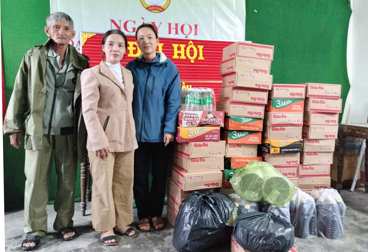 Menighetens kvinnelige kadrer og medlemmer koordinerte også med det lokale motorbåtteamet for å levere ris og mat til folk i isolerte områder i kommunene og menighetene Hoa Thang, Hoa Tri og Tan Dinh. For tiden fortsetter foreningen å mobilisere og motta støtte fra alle for å hjelpe mennesker som er rammet av naturkatastrofer i provinsen.