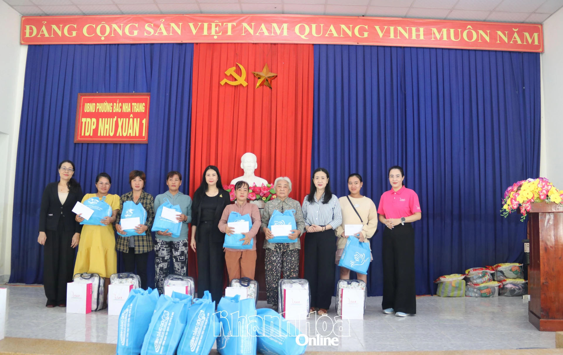 | Ledere av Vietnams kvinneunion, den provinsielle kvinneunionen, Bac Nha Trang-distriktet og sponsorer overrakte gaver til folket. |