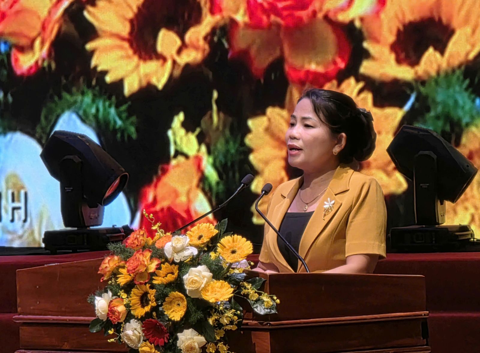 Nguyen Thi Phong Vu, leder for propaganda- og massemobiliseringskommisjonen i den provinsielle partikomiteen, talte på konferansen.