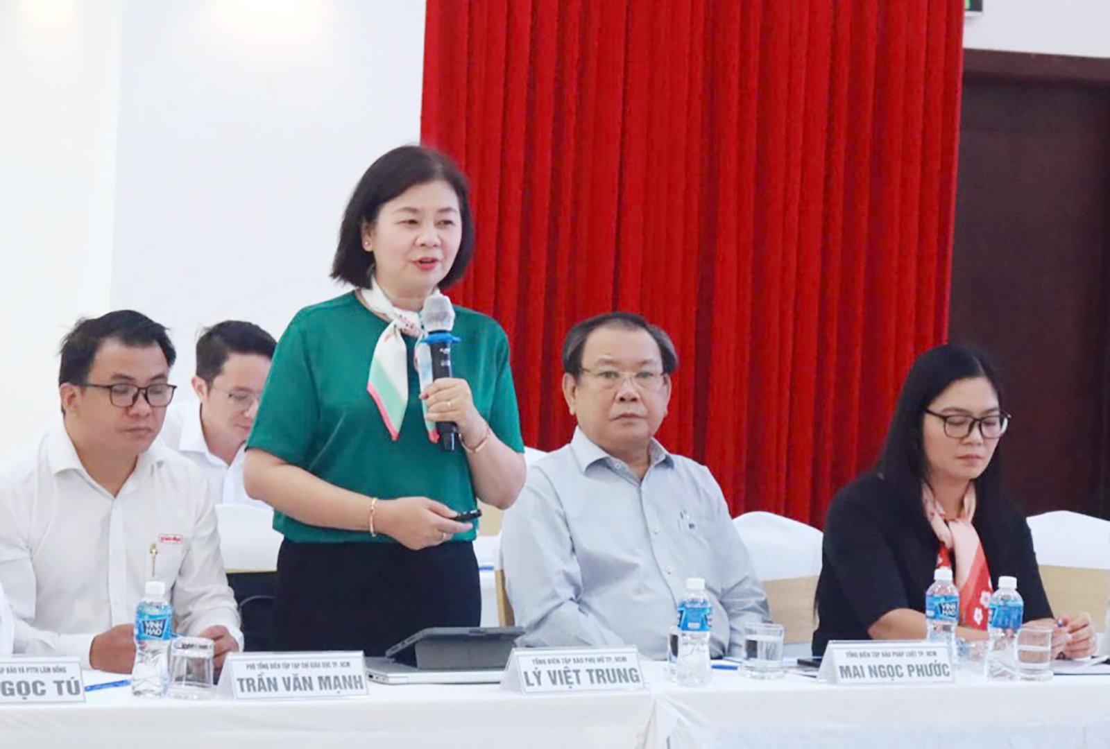 Journalist Doan Hong Phuc, permanent visepresident i An Giang provinsielle journalistforening, diskuterte temaet «Modellen med å slå sammen redaksjoner og bygge en ny organisasjonsstruktur er både en mulighet og en utfordring for bærekraftig utvikling av lokal journalistikk i den digitale tidsalderen».