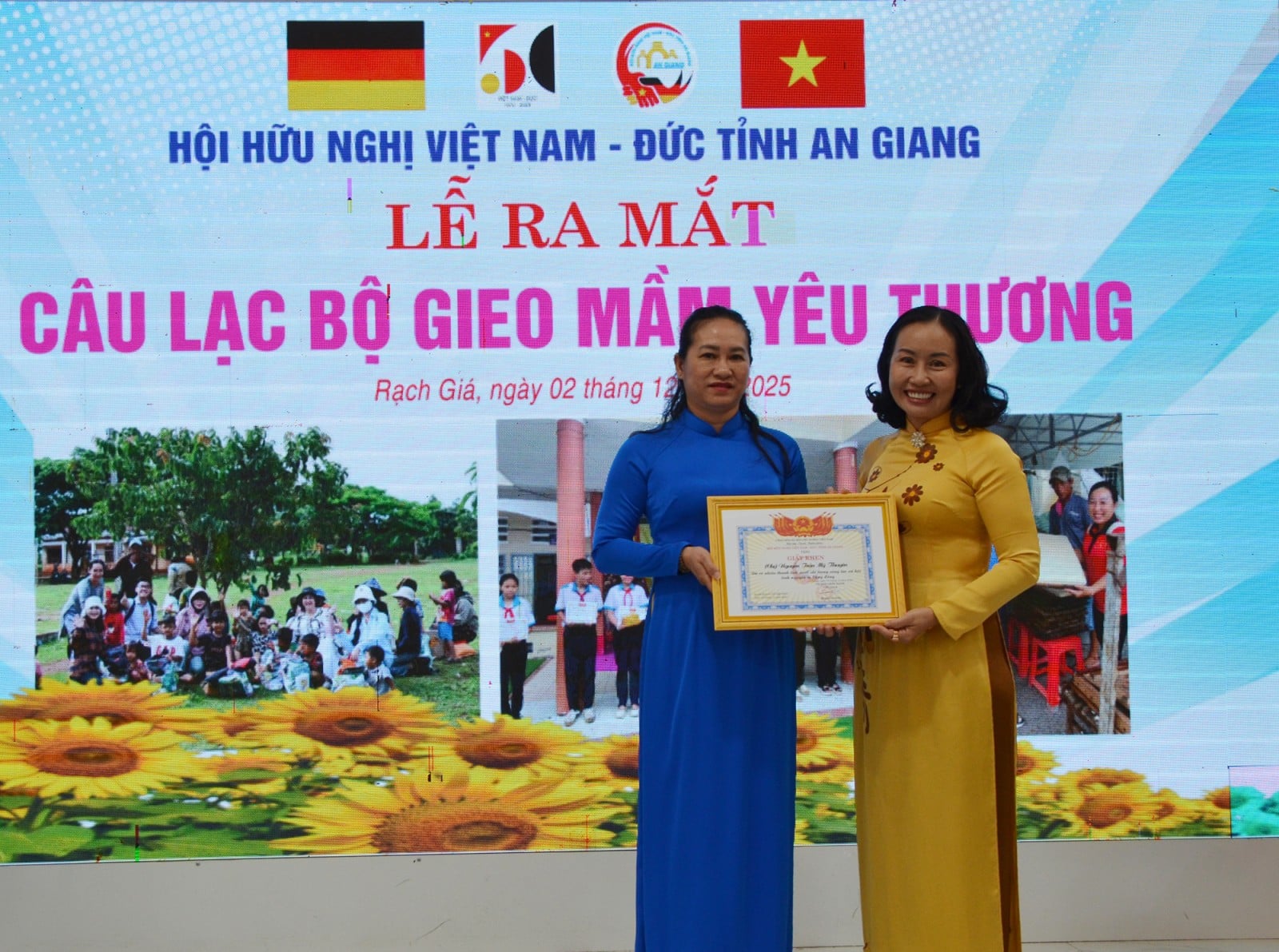 Den stående komiteen for Vietnam-Tyskland-vennskapsforeningen i An Giang-provinsen tildelte foreningen «Kvinner som lever vakkert» for dens innsats i å samle, forene og bygge opp bevegelsen for kvinner som lever vakkert.