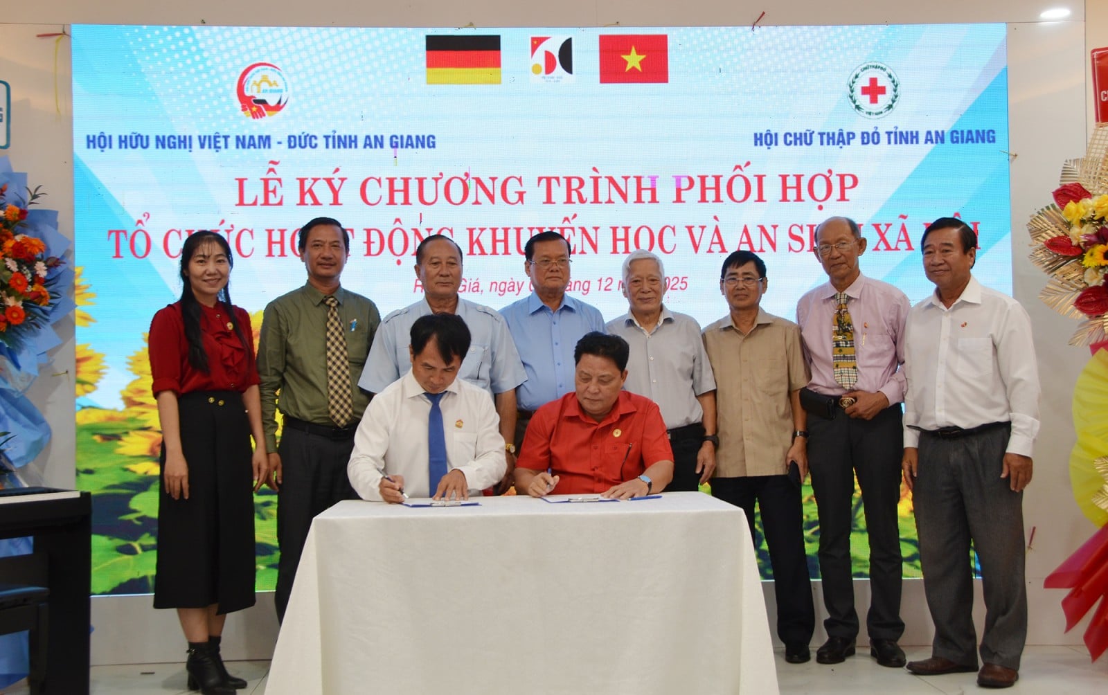 Vietnam-Tyskland-vennskapsforeningen i An Giang-provinsen og An Giang Røde Kors-forening signerte et samarbeidsprogram for å organisere aktiviteter «Fremme utdanning og sosial trygghet»