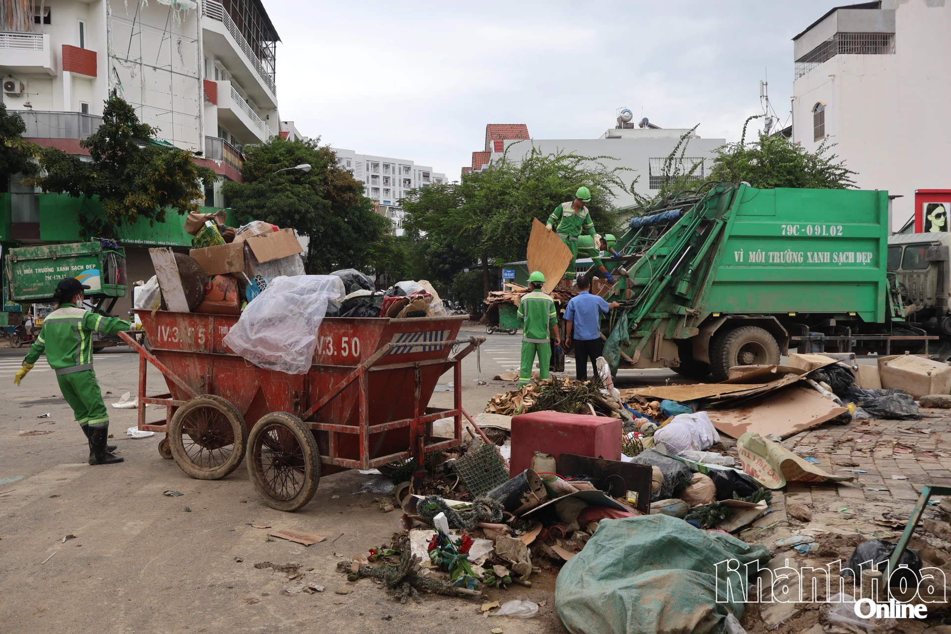 | Arbeidere samler inn avfall i Tay Nha Trang-distriktet. |