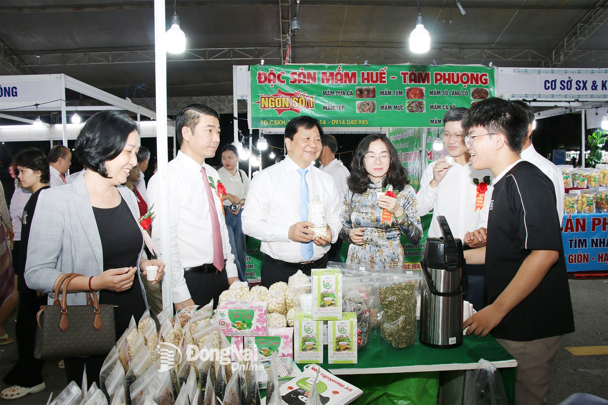 | Ledere fra Dong Nai -provinsen og ledere fra avdelinger og avdelinger besøkte stands med Dong Nai-produkter på utstillingsmessen for typiske landlige industriprodukter fra sørøstregionen - Dong Nai i 2025. Foto: Hai Quan |